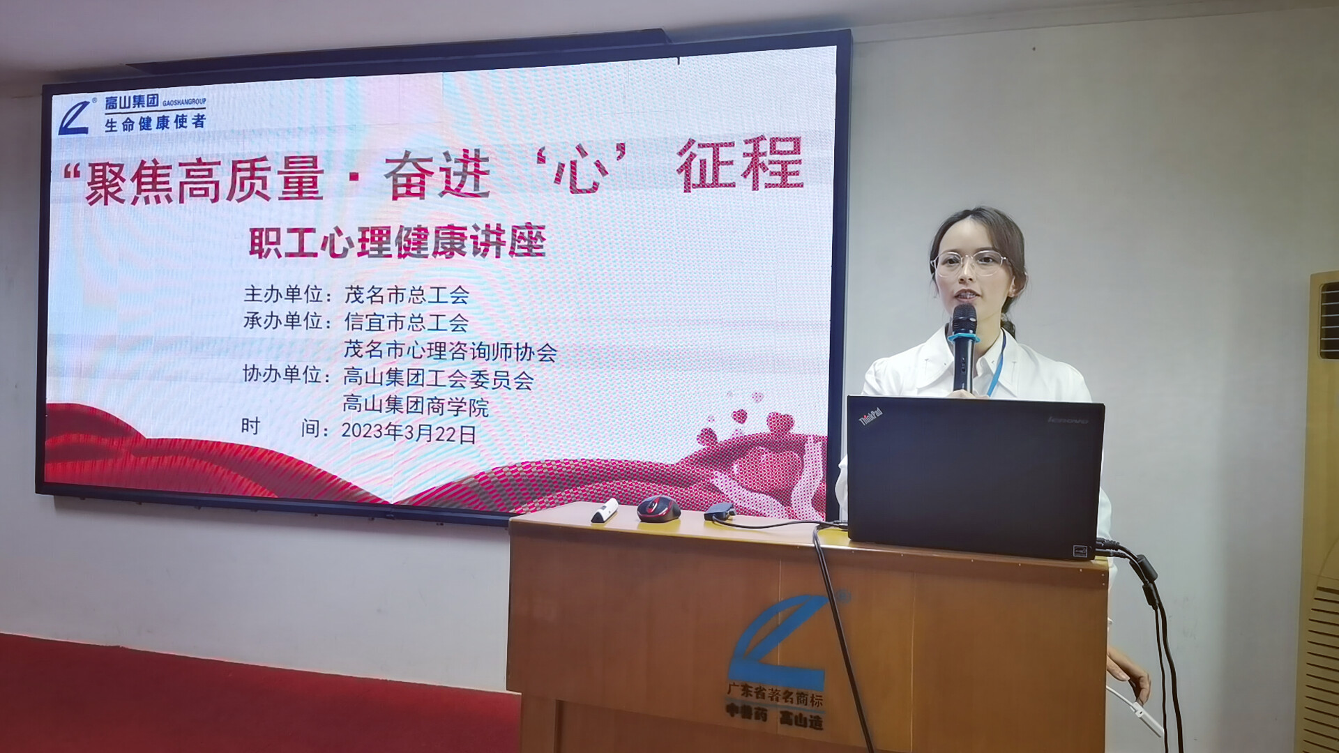 2023年3月22日下午,由茂名市總工會(huì)主辦,攜手信宜市總工會(huì)、茂名市心理咨詢師協(xié)會(huì)走進(jìn)高山集團(tuán),開(kāi)展以“聚焦高質(zhì)量●奮進(jìn)‘心’征程”為主題的職工心理健康講座。