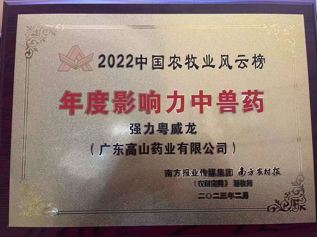 問初心·知變通·開新局,由農(nóng)財(cái)寶典·新牧網(wǎng)組織舉辦的第12屆中國農(nóng)牧業(yè)風(fēng)云會(huì)暨農(nóng)財(cái)寶典創(chuàng)刊20周年慶典,于2月19-21日,在廣州花都華鉅君悅酒店隆重召開,強(qiáng)力粵威龍榮獲2022中國農(nóng)牧業(yè)風(fēng)云榜之“2022年度影響力中獸藥”稱號。
