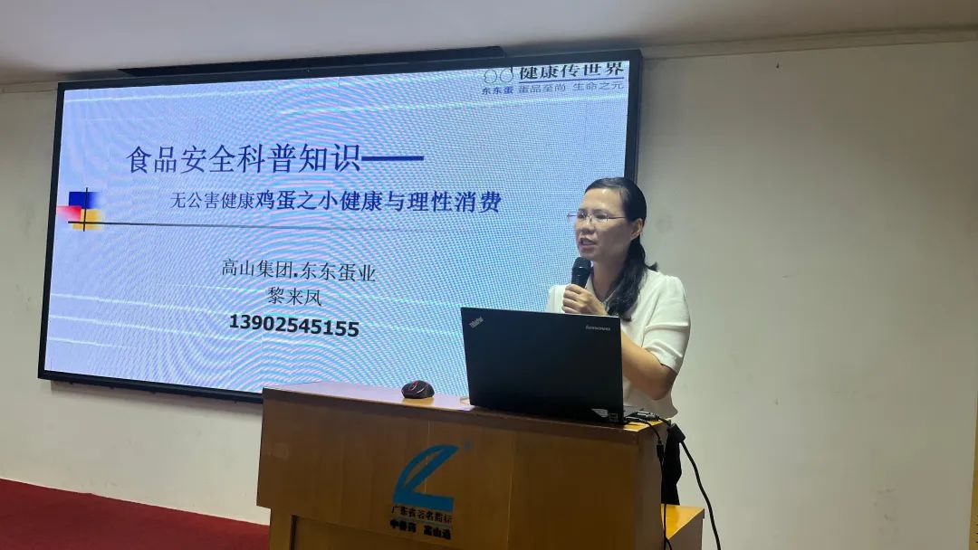 高山集團副總經(jīng)理,東東蛋業(yè)總經(jīng)理黎來鳳作《食品安全科普知識—無公害健康雞蛋之小健康與理性消費》報告