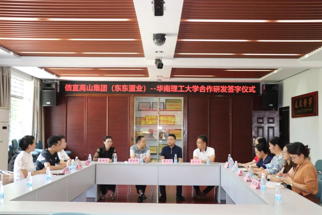 2022年9月3日上午,東東蛋業(yè)(廣東)有限公司與華南理工大學(xué)食品學(xué)院戰(zhàn)略合作簽約儀式在廣州舉行,高山集團(tuán)掌舵人梁其佳、東東蛋業(yè)總經(jīng)理黎來(lái)鳳和團(tuán)隊(duì)代表梁財(cái)權(quán)、梁鑫,華南理工大學(xué)食品科學(xué)與工程學(xué)院黨委書記譚志偉、碩士生導(dǎo)師李汴生教授及其創(chuàng)新團(tuán)隊(duì)代表參加了簽約儀式,召開技術(shù)座談會(huì),并決定成立華南理工大學(xué)食品學(xué)院(李汴生教授)信宜創(chuàng)新中心。