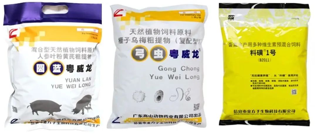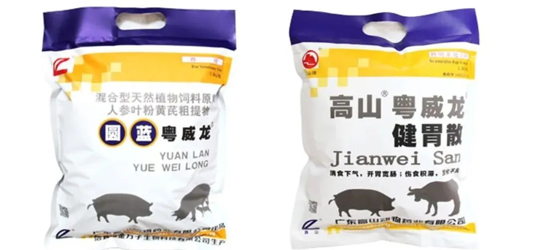 圓藍(lán)粵威龍散+高山粵威龍散各1kg拌1千斤料連喂15天。