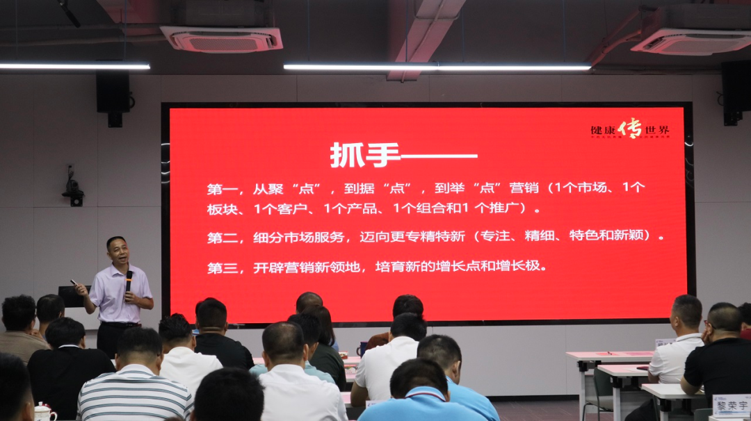 營銷中心營銷總監(jiān)陳翠作《營銷工作總結(jié)與計劃》報告,首先總結(jié)上半年營銷工作的亮點、缺點和補點,同時作出下半年工作計劃。要求大家以分析與轉(zhuǎn)化為抓手,實現(xiàn)區(qū)域業(yè)績穩(wěn)步增長。