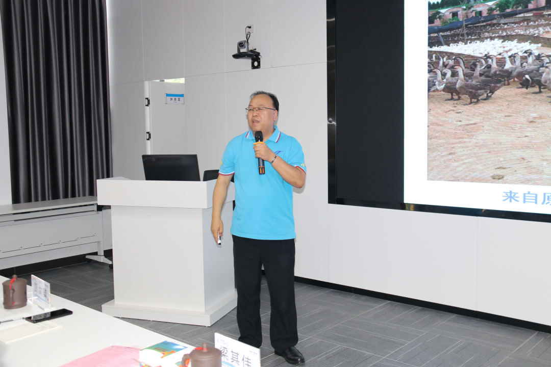 廣東省水禽產(chǎn)業(yè)技術(shù)體系崗位專家、廣東省農(nóng)村科技特派員、廣東海洋大學(xué)濱海農(nóng)業(yè)學(xué)院動物科學(xué)系賈汝敏教授作《當(dāng)前水禽養(yǎng)殖的幾個痛點及對策建議》報告,首先對種鵝在暑熱應(yīng)激下如何提高生產(chǎn)性能作了詳細的講解,分析了風(fēng)道散在雛鵝痛風(fēng)和中藥在預(yù)防鴨鵝呼腸孤病試驗成功的案例,同時分享了盛夏預(yù)防雛鴨雛鵝“水中毒”可以使用藿香正氣口服液4ml/升水,聯(lián)合高山大巴口服液連用3-5天。最后作出如何聚焦現(xiàn)代農(nóng)業(yè)產(chǎn)業(yè)園開展合作和中草藥在雞的兩白凈化上是否有潛力可挖的思考。