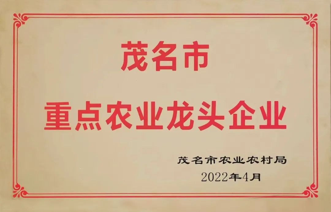 2022年4月14日下午茂名市委農(nóng)村工作會議暨全市實(shí)施鄉(xiāng)村振興戰(zhàn)略工作推進(jìn)會召開,會上王小慧副市長宣讀我市新認(rèn)定國家、省和市級重點(diǎn)農(nóng)業(yè)龍頭企業(yè)名單,市領(lǐng)導(dǎo)向新認(rèn)定的市級重點(diǎn)農(nóng)業(yè)龍頭企業(yè)頒發(fā)牌匾。東東蛋業(yè)(廣東)有限公司獲評“茂名市重點(diǎn)農(nóng)業(yè)龍頭企業(yè)”。