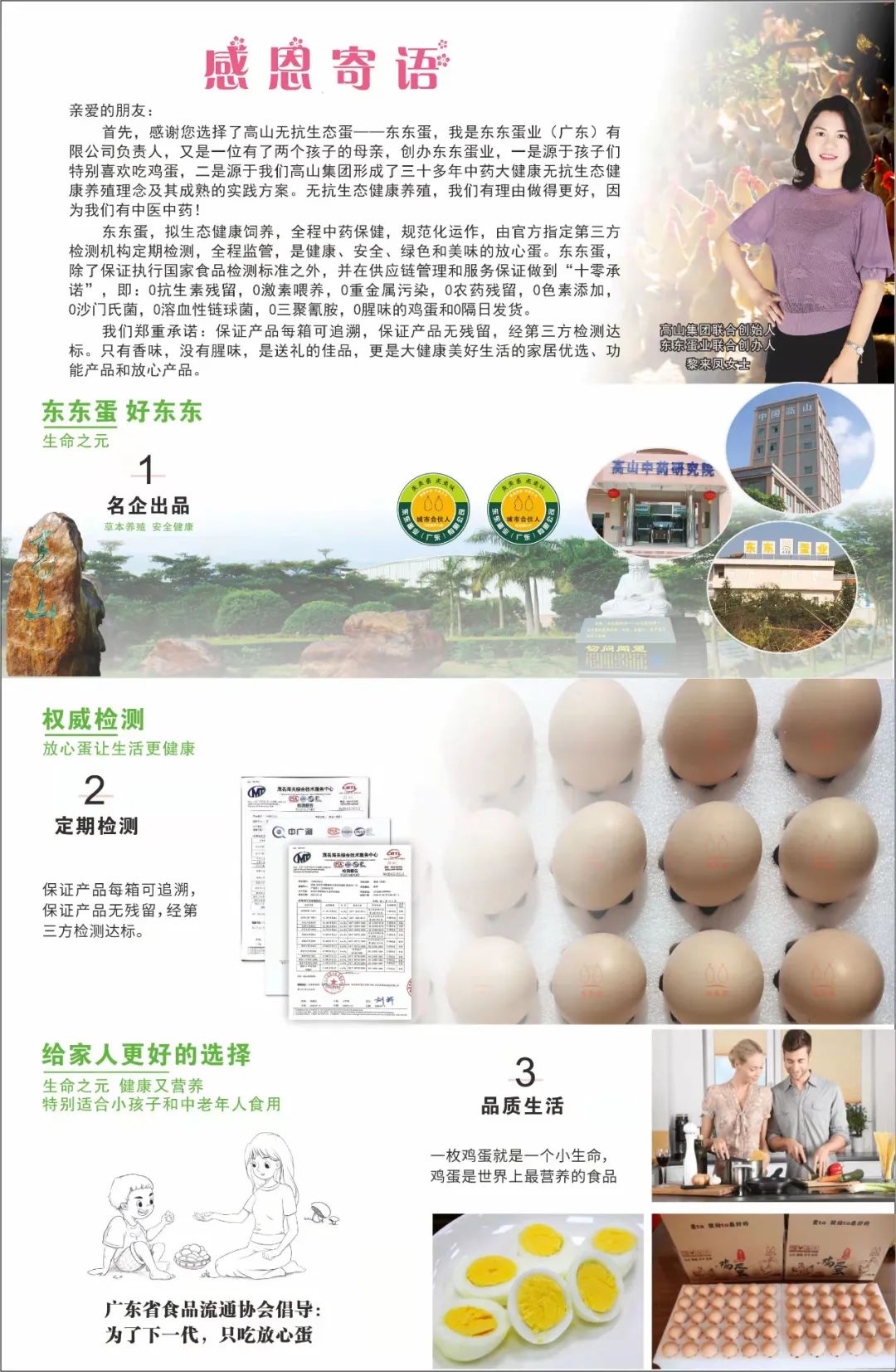 東東蛋業(yè)(廣東)有限公司和東東食品產(chǎn)業(yè)發(fā)展有限公司,是高山集團(tuán)旗下又一骨干企業(yè),是茂名市農(nóng)業(yè)龍頭企業(yè),是廣東省標(biāo)準(zhǔn)化示范場,是信宜懷鄉(xiāng)雞省級現(xiàn)代農(nóng)業(yè)產(chǎn)業(yè)園項(xiàng)目實(shí)施主體單位之一,主要致力于蛋雞養(yǎng)殖、蛋制品和飼料等加工銷售業(yè)務(wù)。公司立足于生產(chǎn)綠色無抗生態(tài)雞蛋,為人民提供健康優(yōu)質(zhì)蛋制品類食品為己任,其品牌產(chǎn)品“東東蛋”入選廣東省現(xiàn)代農(nóng)業(yè)產(chǎn)業(yè)園百家手信產(chǎn)品,是全省入選的兩個雞蛋產(chǎn)品之一。