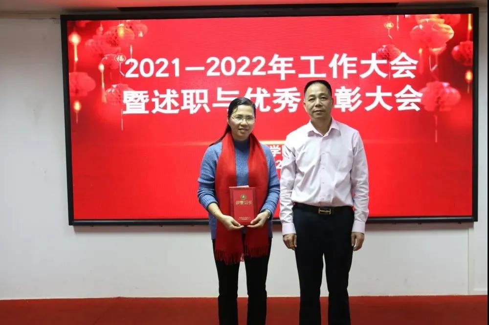 營(yíng)銷中心營(yíng)銷總監(jiān)陳翠為獲得“優(yōu)秀干部(部門經(jīng)理)”獎(jiǎng)的員工頒獎(jiǎng)