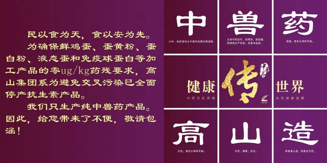 企業(yè)的一切運作都是以產(chǎn)品為中心,但產(chǎn)品又是由人生產(chǎn)出來的,人決定企業(yè)的一切關(guān)鍵因素,不斷變革,不斷創(chuàng)新,不斷超越。高山,視誠信為生命,以質(zhì)量求生存,以創(chuàng)新促發(fā)展。關(guān)愛健康,從畜禽開始。追求卓越品質(zhì),共創(chuàng)美好明天。傳承中醫(yī)中藥文化,創(chuàng)造健康美好生活,是高山人的共同追求。