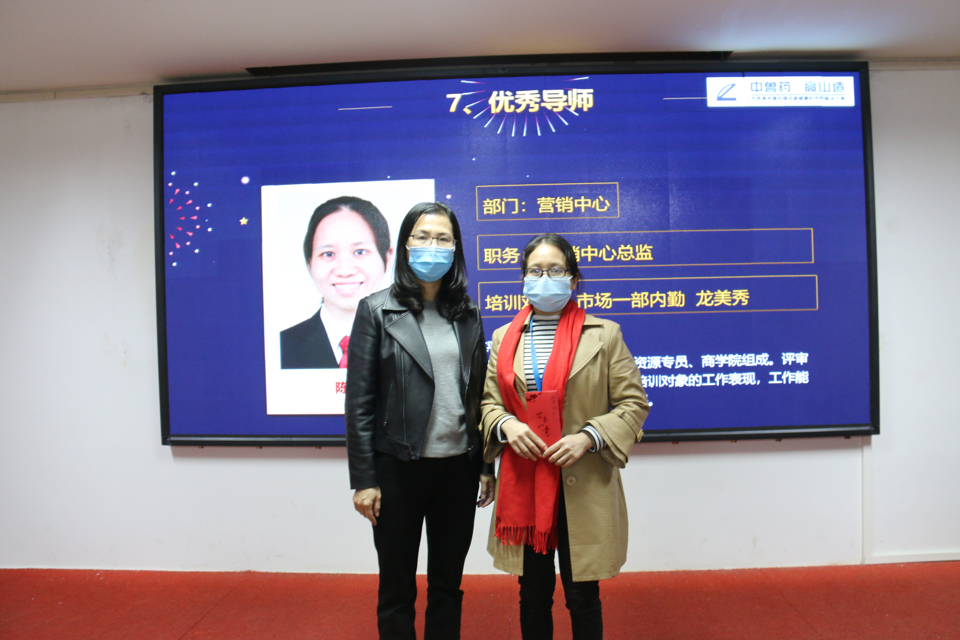 集團(tuán)董事長梁其佳為獲得“高山商學(xué)院優(yōu)秀培訓(xùn)師”員工頒獎(jiǎng)