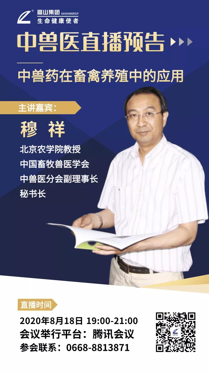 2020年8月18日,高山集團聯(lián)合蘭州正大公司,特邀北京農(nóng)學院穆祥教授通過騰訊會議,為正大集團的養(yǎng)殖技術(shù)團隊開講中獸藥在畜禽養(yǎng)殖中的應用。