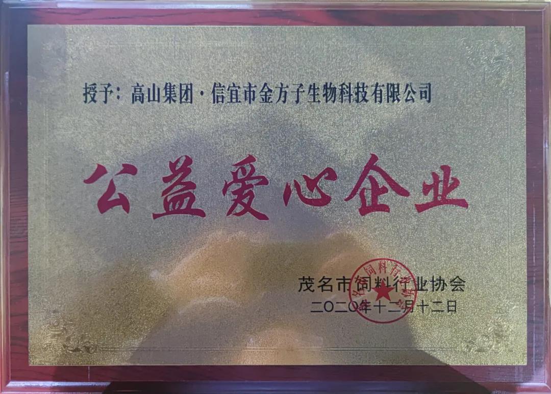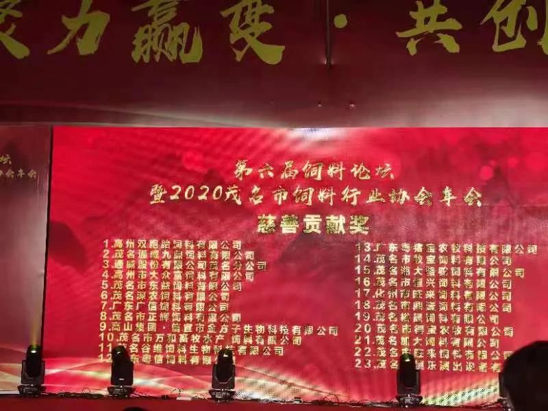 2020年12月12日,第六屆飼料論壇暨2020茂名市飼料行業(yè)協(xié)會(huì)年會(huì)在茂名成功舉辦。高山集團(tuán)旗下,信宜市金方子生物科技有限公司喜獲慈善貢獻(xiàn)獎(jiǎng)。