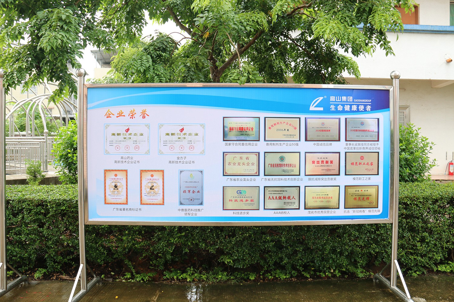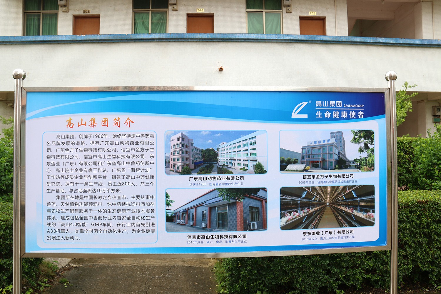 高山集團(tuán)成員企業(yè)有廣東高山動(dòng)物藥業(yè)有限公司、信宜市金方子生物科技有限公司、廣東金方子生物科技有限公司、信宜市高山生物科技有限公司和東東蛋業(yè)(廣東)有限公司等,已建成有全國(guó)中獸藥行業(yè)首條全自動(dòng)生產(chǎn)線、創(chuàng)新中藥軍工爆破分離中試車間和中藥健康研究院綜合大樓。