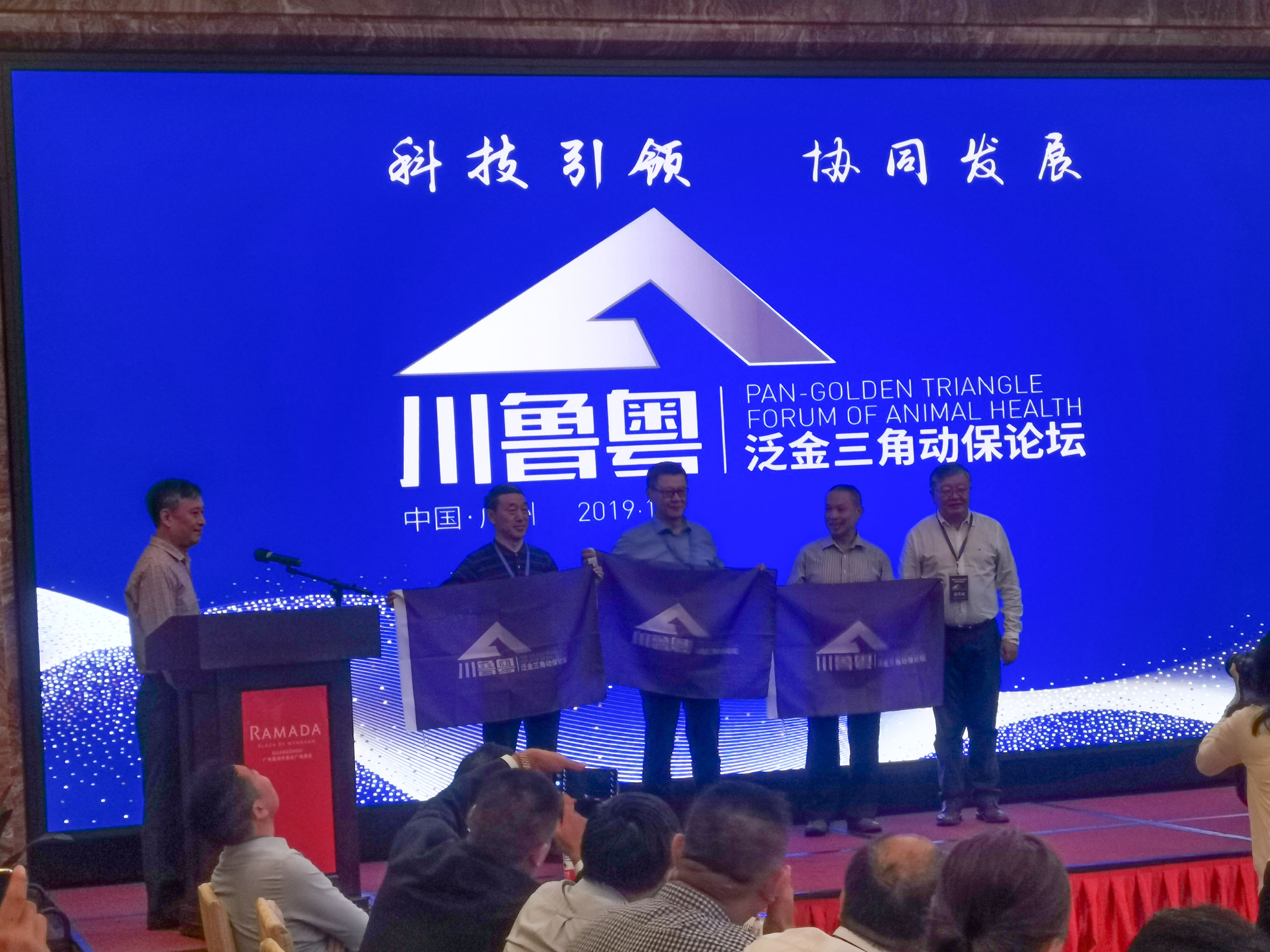 同時(shí)舉行了《川魯粵泛金三角動(dòng)保論壇》授旗儀式,四川省動(dòng)物保健品協(xié)會(huì)會(huì)長楊松沛,廣東省動(dòng)物保健品協(xié)會(huì)會(huì)長黃小建,山東省獸藥協(xié)會(huì)會(huì)長李朝陽接受授旗。