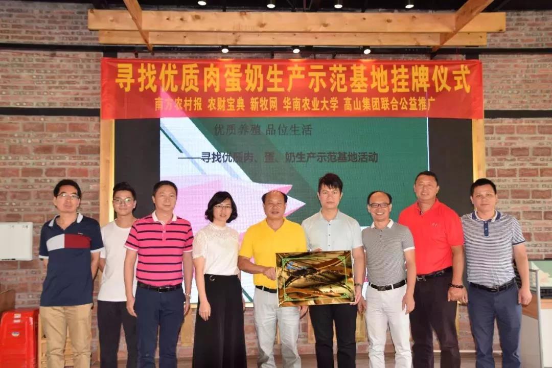 2018年7月12日,南方農村報、《農財寶典》和新牧網(wǎng)、華南農業(yè)大學聯(lián)合高山集團共同推廣“尋找優(yōu)質肉蛋奶生產示范基地”全國公益活動第二站在以“食為鮮”著稱的廣府開平市“合民生鮮”農莊隆重舉行掛牌儀式。