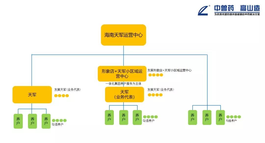 由形象店牽頭發(fā)展小區(qū)域天軍運(yùn)營中心是大海南天軍運(yùn)營中心的重要支撐;以“形象店+天軍”是我們大力發(fā)展形象店和推動高山形象店大發(fā)展的重要舉措;主要以服務(wù)于一體化集團(tuán)養(yǎng)戶為核心和目標(biāo),為優(yōu)質(zhì)肉蛋奶提供最健康的中藥解決方案是大海南〈高山-鑫海農(nóng)〉天軍運(yùn)營中心的中心工作。