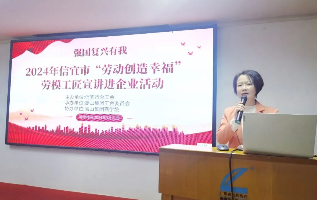 高山集團(tuán)董事長梁其佳發(fā)言,感謝市總工會和市人民法院的支持,鼓勵職工聽好宣講內(nèi)容,學(xué)好工匠精神,立足崗位、拼搏奮斗,大膽創(chuàng)新、不斷探索,再創(chuàng)佳績。