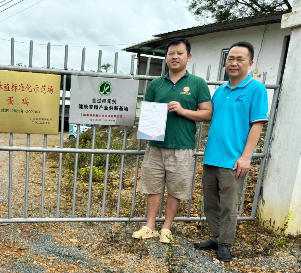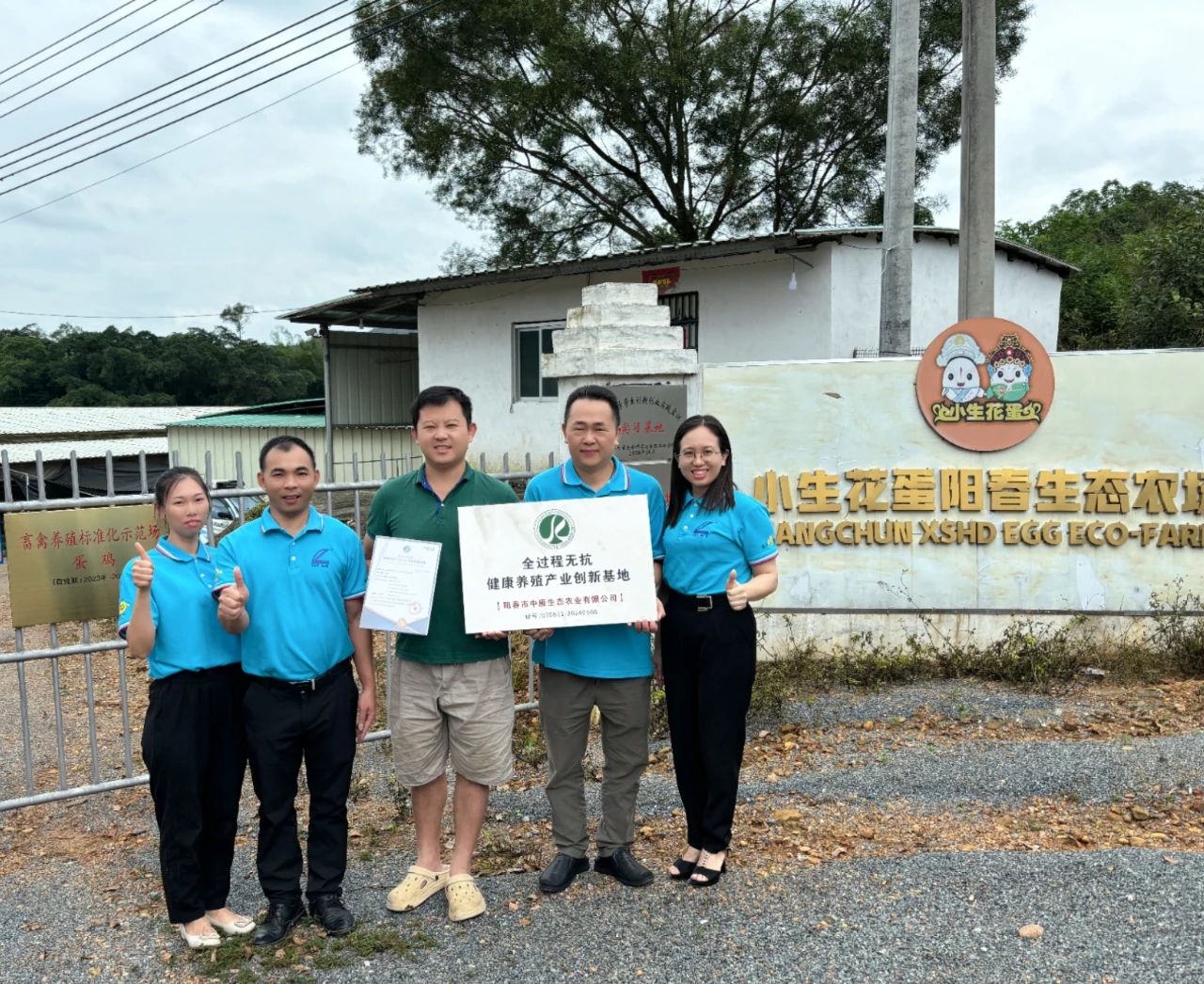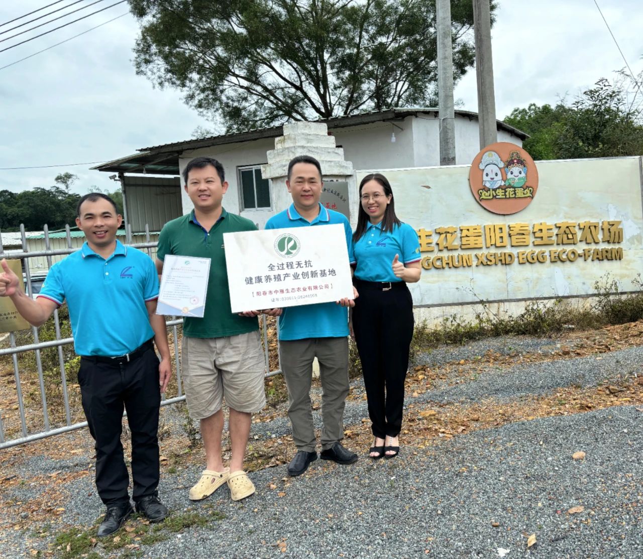 高山公司營(yíng)銷總監(jiān)陳翠、副總監(jiān)龍美秀以及粵東區(qū)經(jīng)理成端榮、營(yíng)銷經(jīng)理黎榮宇代表出席對(duì)陽春市中雁生態(tài)農(nóng)業(yè)有限公司進(jìn)行《全過程無抗健康養(yǎng)殖產(chǎn)業(yè)創(chuàng)新基地》的掛牌授證活動(dòng)。全國(guó)人大代表、陽春市中雁生態(tài)農(nóng)業(yè)有限公司總經(jīng)理謝汝朋親自接受授牌。