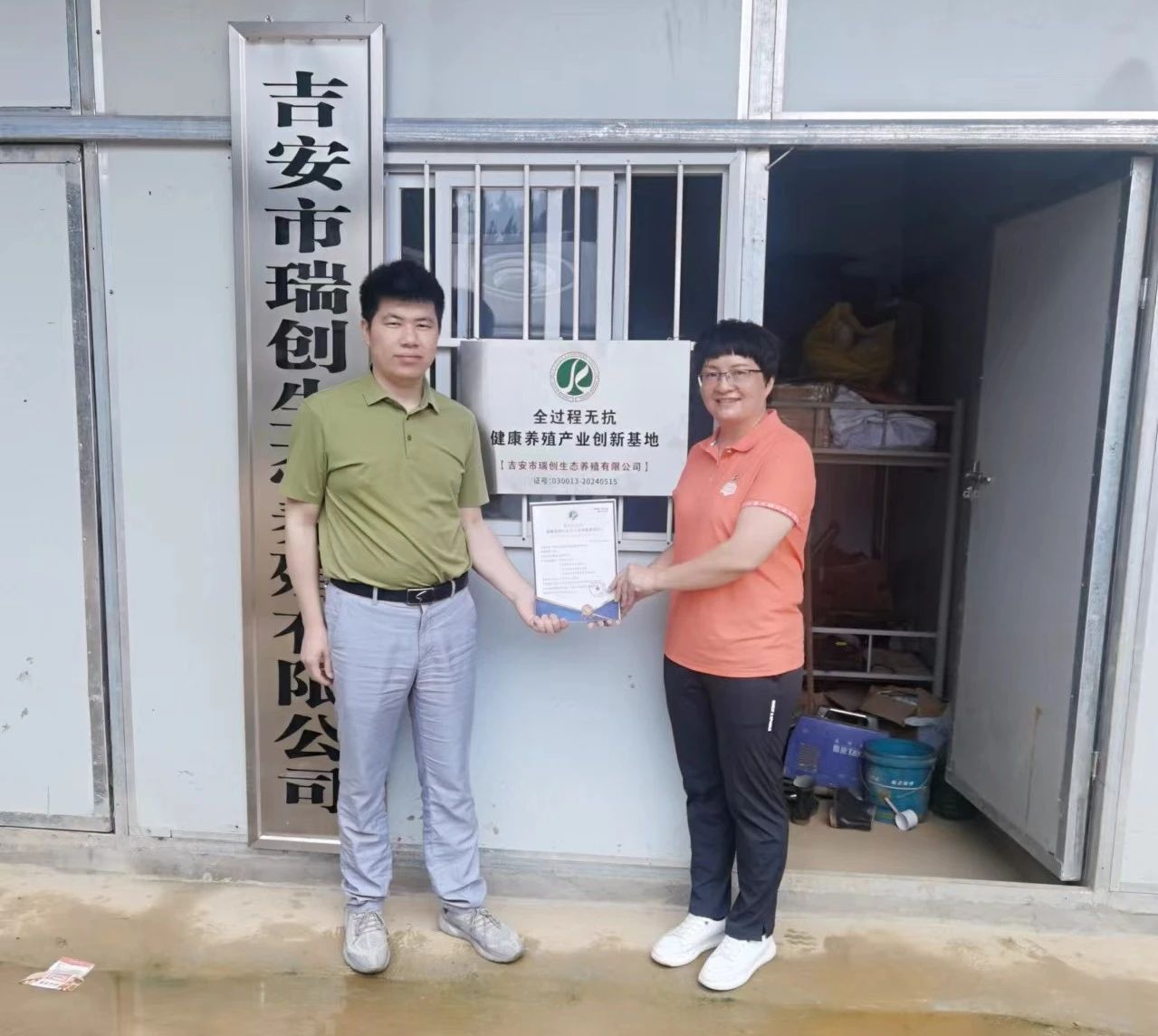 2024年5月25日,吉安市瑞創(chuàng)生態(tài)養(yǎng)殖有限公司掛牌《全過程無抗健康養(yǎng)殖產(chǎn)業(yè)創(chuàng)新基地》牌匾并授予證書,瑞創(chuàng)的負(fù)責(zé)人彭聰總經(jīng)理,從2019年加盟高山“1+1”形象店,到瑞創(chuàng)生態(tài)養(yǎng)殖有限公司,從認(rèn)同中醫(yī)中藥大健康理念到大健康無抗養(yǎng)殖踐行者;這是校企合作和省際合作的的重要成果,也是在全過程無抗蛋雞養(yǎng)殖產(chǎn)業(yè)創(chuàng)新發(fā)展道路上邁出堅實(shí)的一步。推動蛋品向更安全和更優(yōu)質(zhì)的方向前進(jìn),為人民群眾提供安全、健康與優(yōu)質(zhì)的食品。