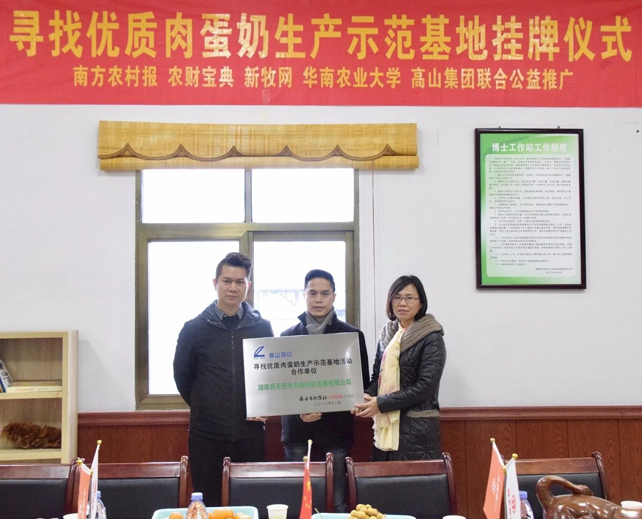 2018年12月8日,由南方農(nóng)村報、《農(nóng)財寶典》和新牧網(wǎng)、華南農(nóng)業(yè)大學(xué)聯(lián)合高山集團(tuán)共同推廣“尋找優(yōu)質(zhì)肉蛋奶生產(chǎn)示范基地”全國公益活動第四站在湖南寧遠(yuǎn)縣舉行。
