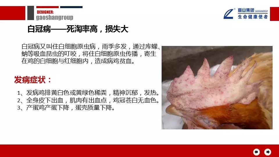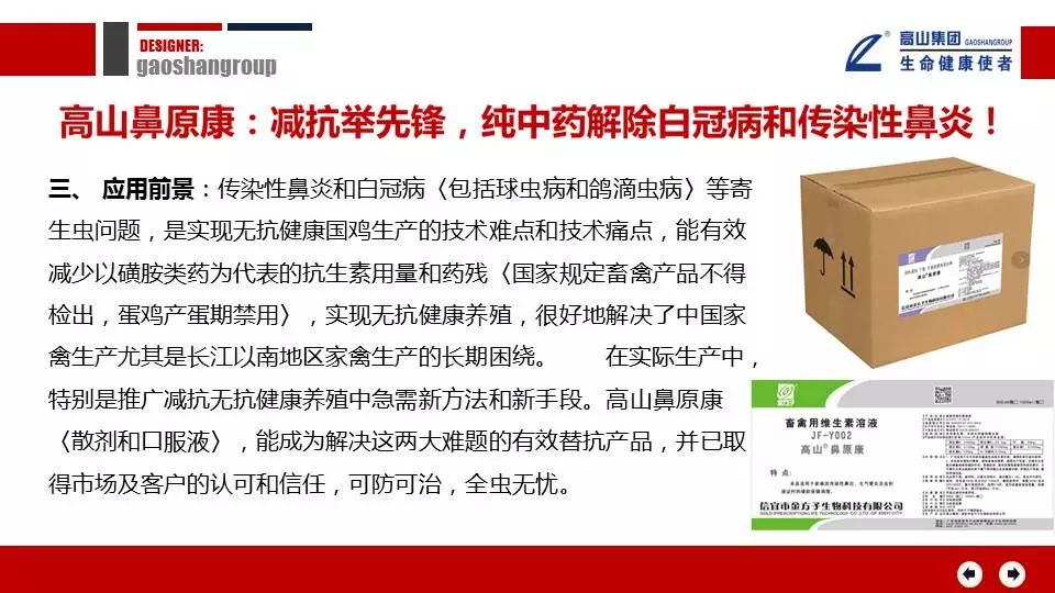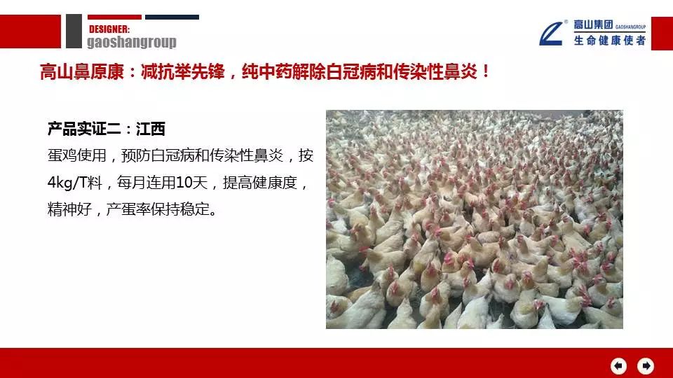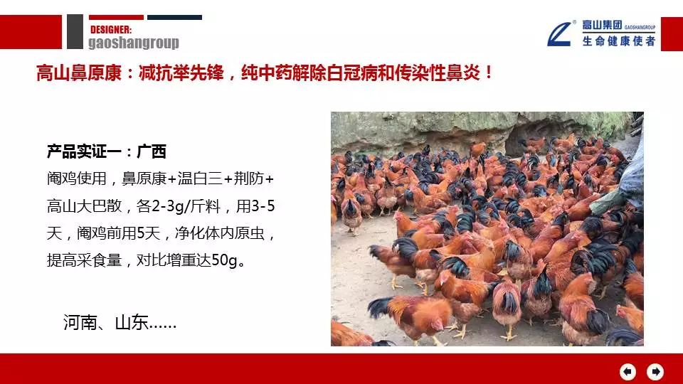 3、白冠病和傳染性鼻炎。這兩個(gè)病貫穿春夏秋冬季節(jié),交錯(cuò)流行。從3月開始,長江流域,從5月開始,黃河流域發(fā)生較多。傳播速度快,死亡率高,生產(chǎn)性能丟失多,是這個(gè)病的共性,損失巨大。用高山鼻原康,鼻原康發(fā)病即用,按4kg/噸,重證8kg/噸,連用5天,用了馬上見效,與磺胺類藥成本對(duì)比相差不大,且效果最確切。