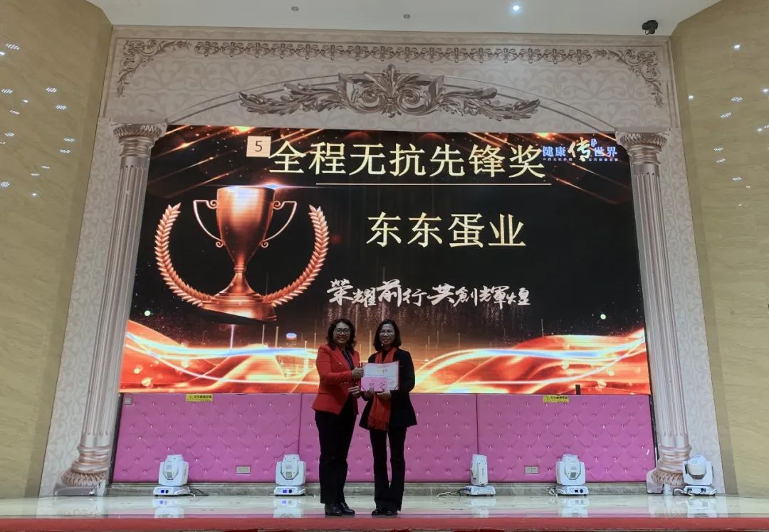 全國人大代表華南農(nóng)業(yè)大學(xué)謝青梅教授向黎來鳳總經(jīng)理頒發(fā)《全程無抗先鋒獎》