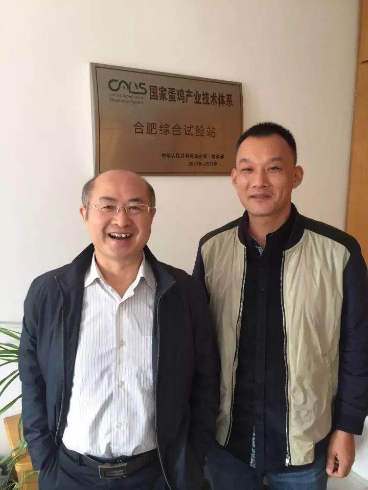 國(guó)家蛋雞體系合肥站站長(zhǎng)張丹俊研究員(左)與國(guó)家蛋雞體系宣城站站長(zhǎng)吳繼軍(右)合影