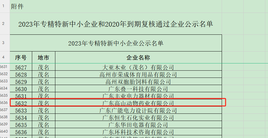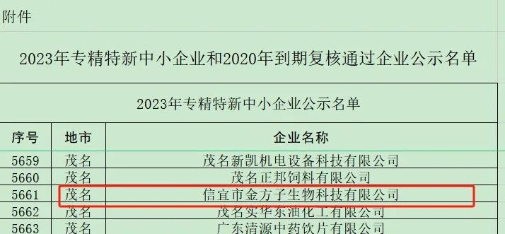 熱烈祝賀高山集團骨干成員企業(yè)廣東高山動物藥業(yè)有限公司和信宜市金方子生物科技有限公司于2023年12月均通過評審被認(rèn)定為廣東省專精特新企業(yè)榮譽稱號,預(yù)計將于2024年初獲頒證書及授牌。