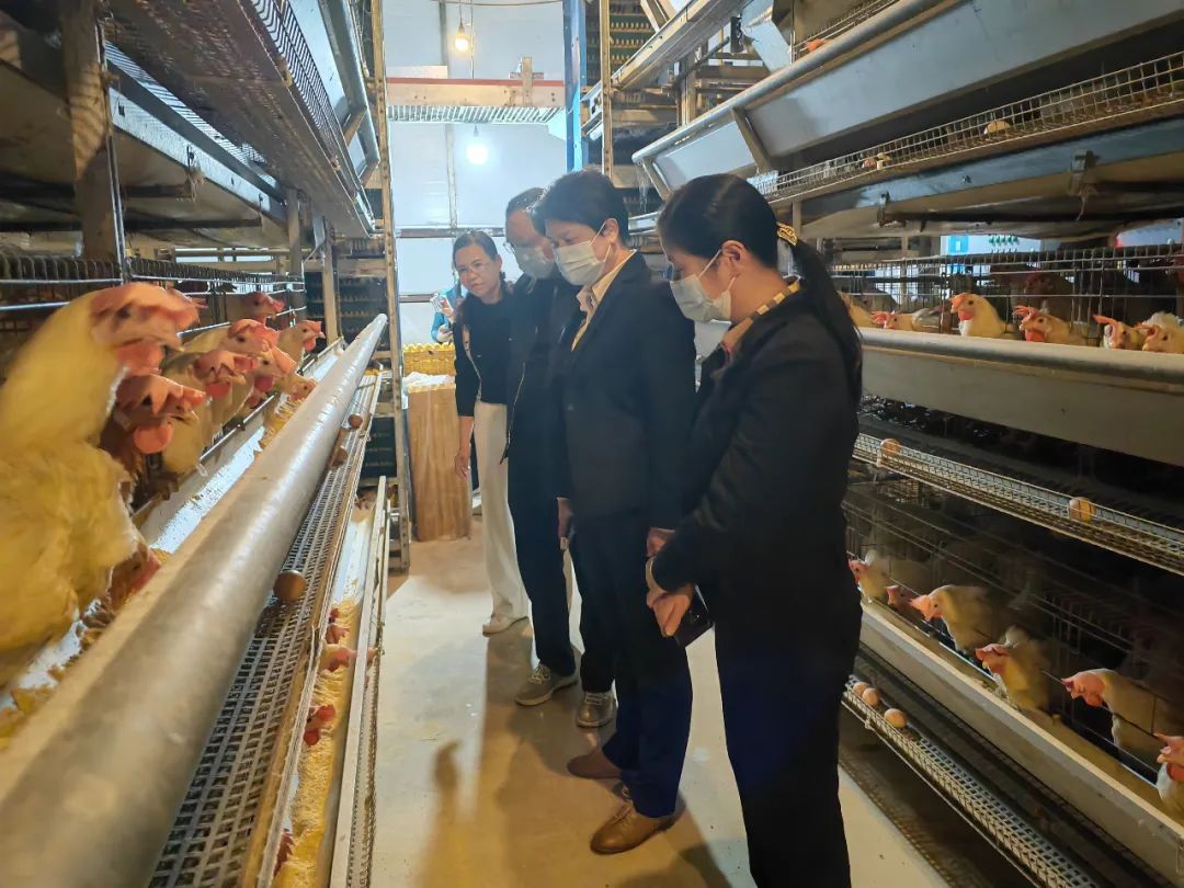 調(diào)研組一行先到東東蛋雞養(yǎng)殖場基地,實地了解養(yǎng)殖場生產(chǎn)情況和女職工的就業(yè)福利保障,養(yǎng)殖戶聯(lián)農(nóng)帶農(nóng)情況。參觀東東蛋品牌蛋生產(chǎn)區(qū)和兒童專用蛋生產(chǎn)區(qū),對東東蛋業(yè)堅持全過程按高山“1+3+1”中藥無抗大健康養(yǎng)殖理念實現(xiàn)利潤倍增方案,打磨“東東蛋業(yè)全過程中藥無抗蛋雞養(yǎng)殖技求標準”的高品質(zhì)好風味路線表示首肯。