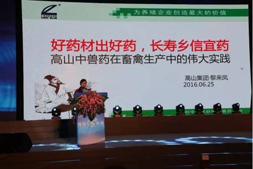 高山集團(tuán)常務(wù)副總經(jīng)理黎來鳳做了《高山中獸藥在畜禽生產(chǎn)中的偉大實(shí)踐》的主題分享,從八個(gè)方面分享了高山30年在畜禽生產(chǎn)中使用純中藥實(shí)現(xiàn)無抗養(yǎng)殖的偉大實(shí)踐,并向全場(chǎng)分享了未來高山要為全產(chǎn)業(yè)鏈服務(wù),為安全食品服務(wù),為人類健康服務(wù)的發(fā)展理念。