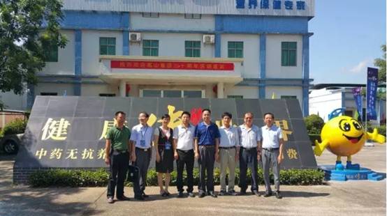 廣西玉林水產(chǎn)畜牧業(yè)協(xié)會(huì)龐宏志會(huì)長(zhǎng)(右三)、廣西金陵集團(tuán)黃雄董事長(zhǎng)(左四)與公司高層在金方子合影