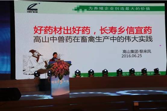 高山集團常務(wù)副總經(jīng)理黎來鳳做了《高山中獸藥在畜禽生產(chǎn)中的偉大實踐》的主題分享,從八個方面分享了高山30年在畜禽生產(chǎn)中使用純中藥實現(xiàn)無抗養(yǎng)殖的偉大實踐,并向全場分享了未來高山要為全產(chǎn)業(yè)鏈服務(wù),為安全食品服務(wù),為人類健康服務(wù)的發(fā)展理念。