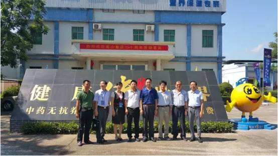 廣西玉林水產(chǎn)畜牧業(yè)協(xié)會龐宏志會長(右三)、廣西金陵黃雄董事長(左四)與公司高層在金方子合影
