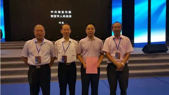 中國畜牧獸醫(yī)學會夏有彩副秘書長、吉林大學韋旭斌教授、中國畜牧獸醫(yī)學會中獸醫(yī)分會穆詳會長向高山集團贈遞中國畜牧獸醫(yī)學會中獸醫(yī)分會賀信合影