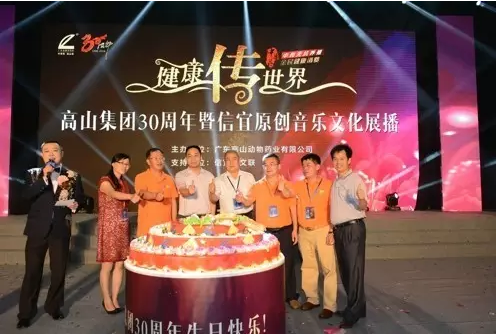 2016年6月25日,廣東高山集團在中國長壽之鄉(xiāng)廣東省信宜市紹秀體育館隆重舉辦30周年慶典“健康傳世界”主題系列活動。來自全國有關(guān)飼料、養(yǎng)殖企業(yè)、畜禽產(chǎn)品加工企業(yè)、中獸藥生產(chǎn)龍頭企業(yè)、經(jīng)銷商合作伙伴、行業(yè)高校、科研院所等單位約800名嘉賓代表匯聚信宜,共同倡導中藥無抗養(yǎng)殖健康模式、傳遞全民健康消費文化、樹立一榮俱榮的行業(yè)新氣象。