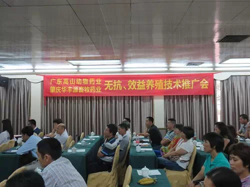 在2015華南(肇慶)畜牧業(yè)博覽會啟動之際,5月13日,高山集團率先在肇慶松濤賓館舉辦了關于“控制核心養(yǎng)殖成本,實現(xiàn)高利潤倍增——高山純中獸藥效益養(yǎng)殖優(yōu)化方案”的技術推廣會,與飼料企業(yè)、經(jīng)銷商、養(yǎng)殖場老板近100人展開討論。