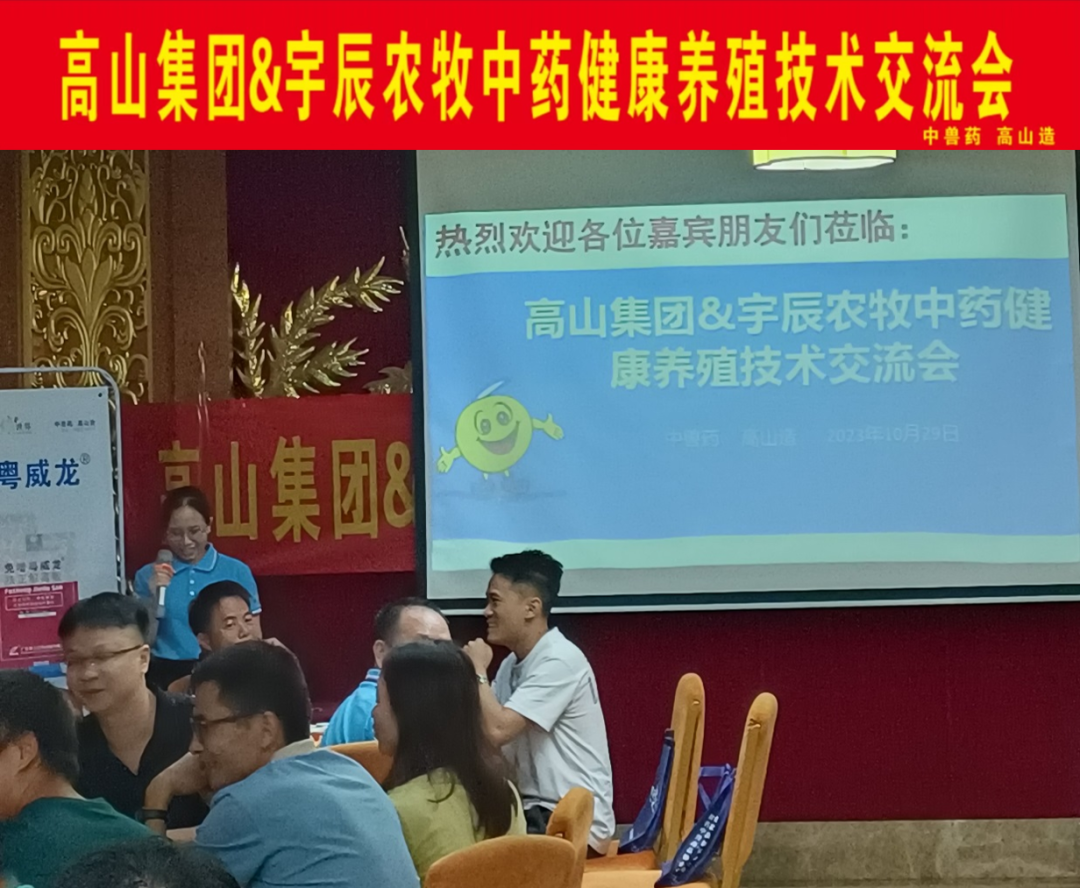 2023年10月29日,高山集團(tuán)&宇辰農(nóng)牧中藥大健康養(yǎng)殖交流會在河源成功舉行,佛山科學(xué)技術(shù)學(xué)院袁生教授、高山集團(tuán)營銷總監(jiān)陳翠、粵東區(qū)營銷經(jīng)理林琪斌及團(tuán)隊骨干成員、宇辰農(nóng)牧董事長江維波、總經(jīng)理陳甫周和養(yǎng)殖嘉賓代表等70多人參加。