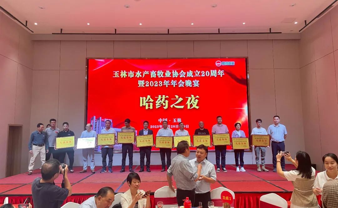 2023年10月29日,玉林市水產(chǎn)畜牧業(yè)協(xié)會(huì)成立20周年慶典暨2023年年會(huì),在玉林中鼎東方文華大酒店舉辦,廣東高山動(dòng)物藥業(yè)有限公司獲得“先進(jìn)集體”的榮譽(yù)稱號(hào)。高山公司營(yíng)銷經(jīng)理梁祖榮與黃桂梅出席參加,黃桂梅經(jīng)理代表上臺(tái)接受表彰,并領(lǐng)取了榮譽(yù)獎(jiǎng)牌。