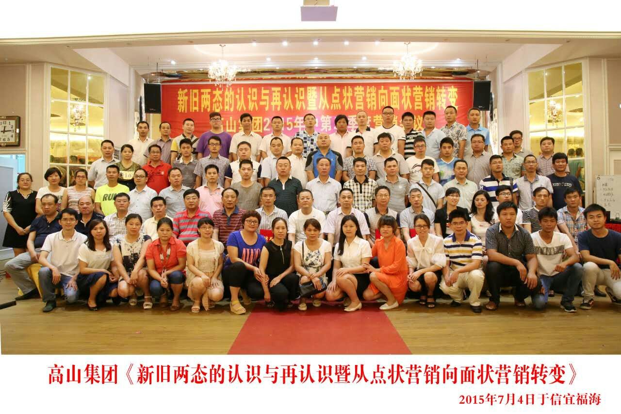 2015年7月4-5日,高山集團(tuán)在信宜隆重召開《新舊兩態(tài)的認(rèn)識(shí)與再認(rèn)識(shí)暨從點(diǎn)狀營銷向面狀營銷轉(zhuǎn)變》營銷會(huì)議,全國各地嘉賓與高山營銷精英近100人參加。