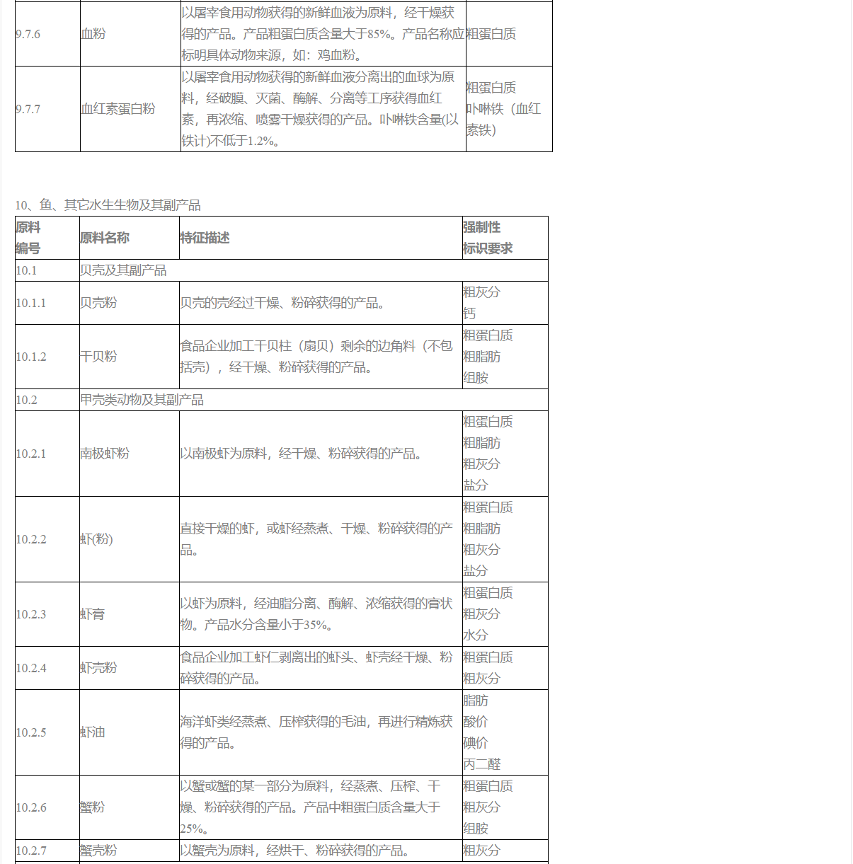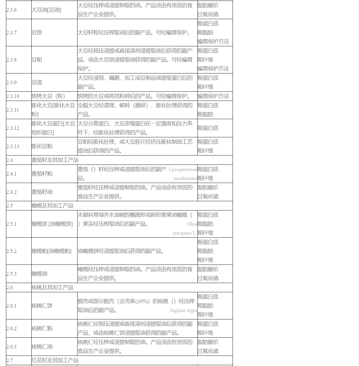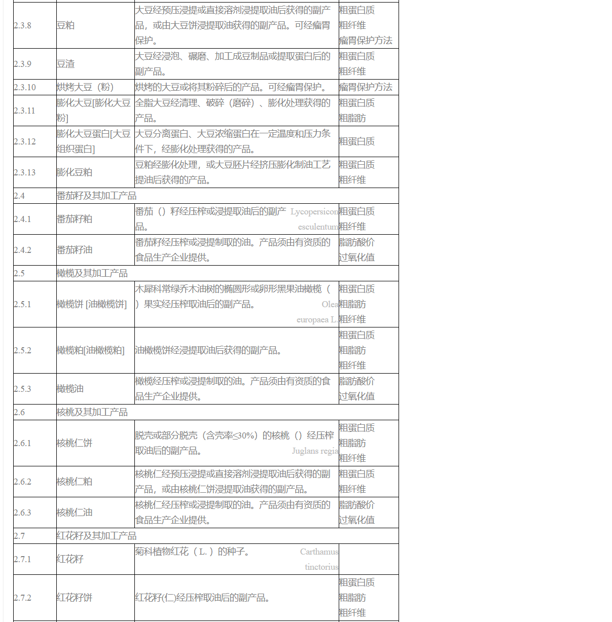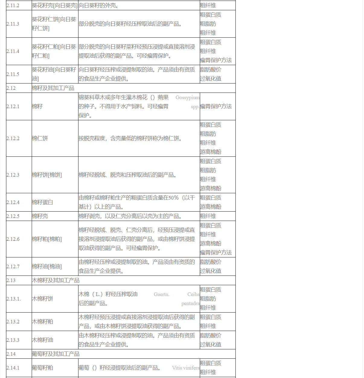 7. 目錄中所列原料,并不意味著企業(yè)可以任意無(wú)限量地使用,有些原料含有天然生物毒素,如棉籽粕等,企業(yè)應(yīng)根據(jù)飼喂對(duì)象和原料特點(diǎn)進(jìn)行合理選擇和使用。