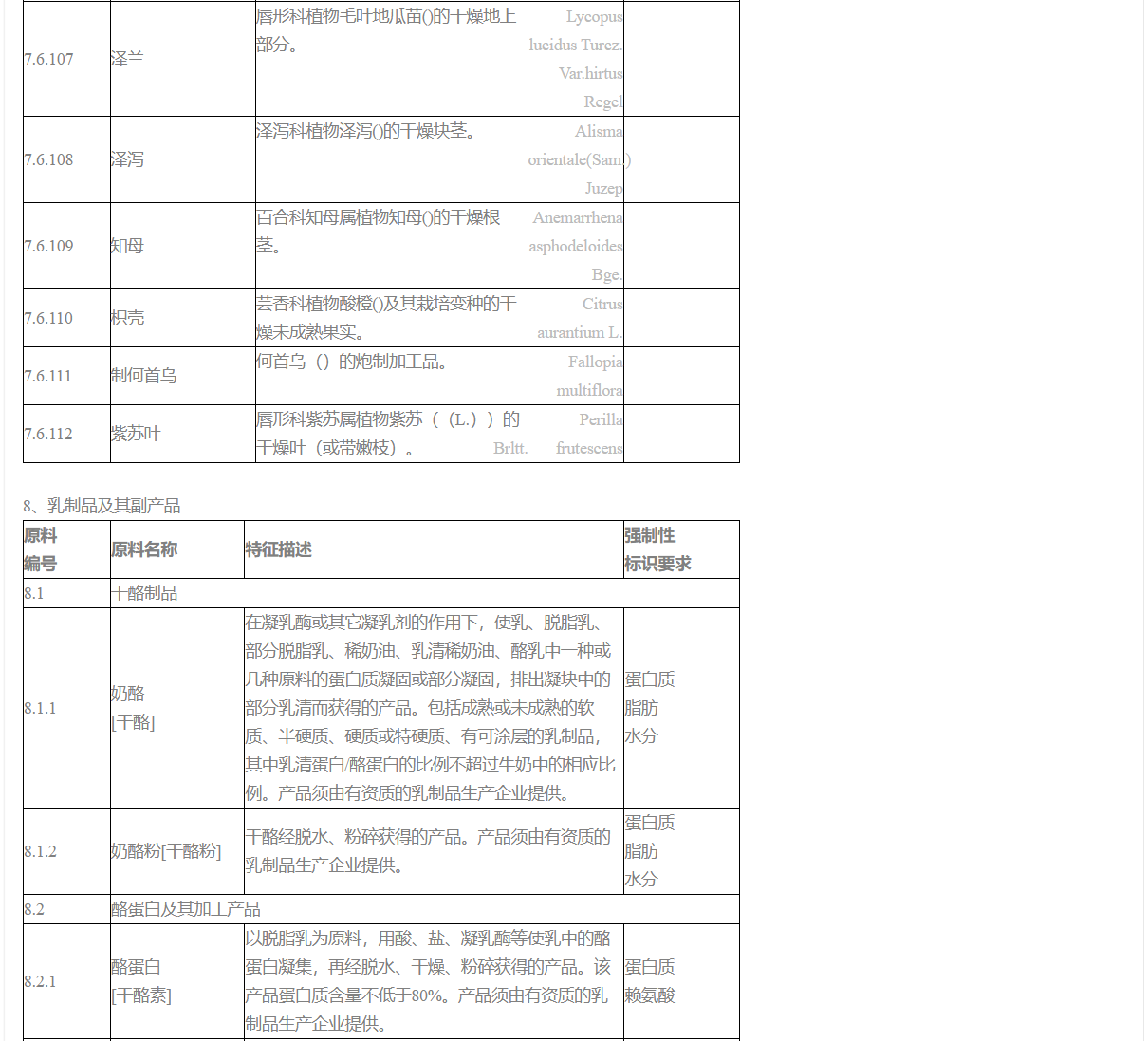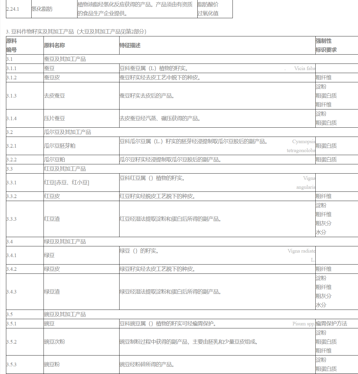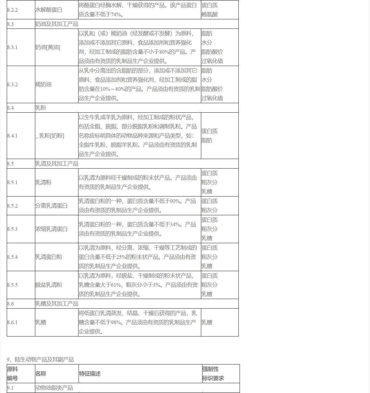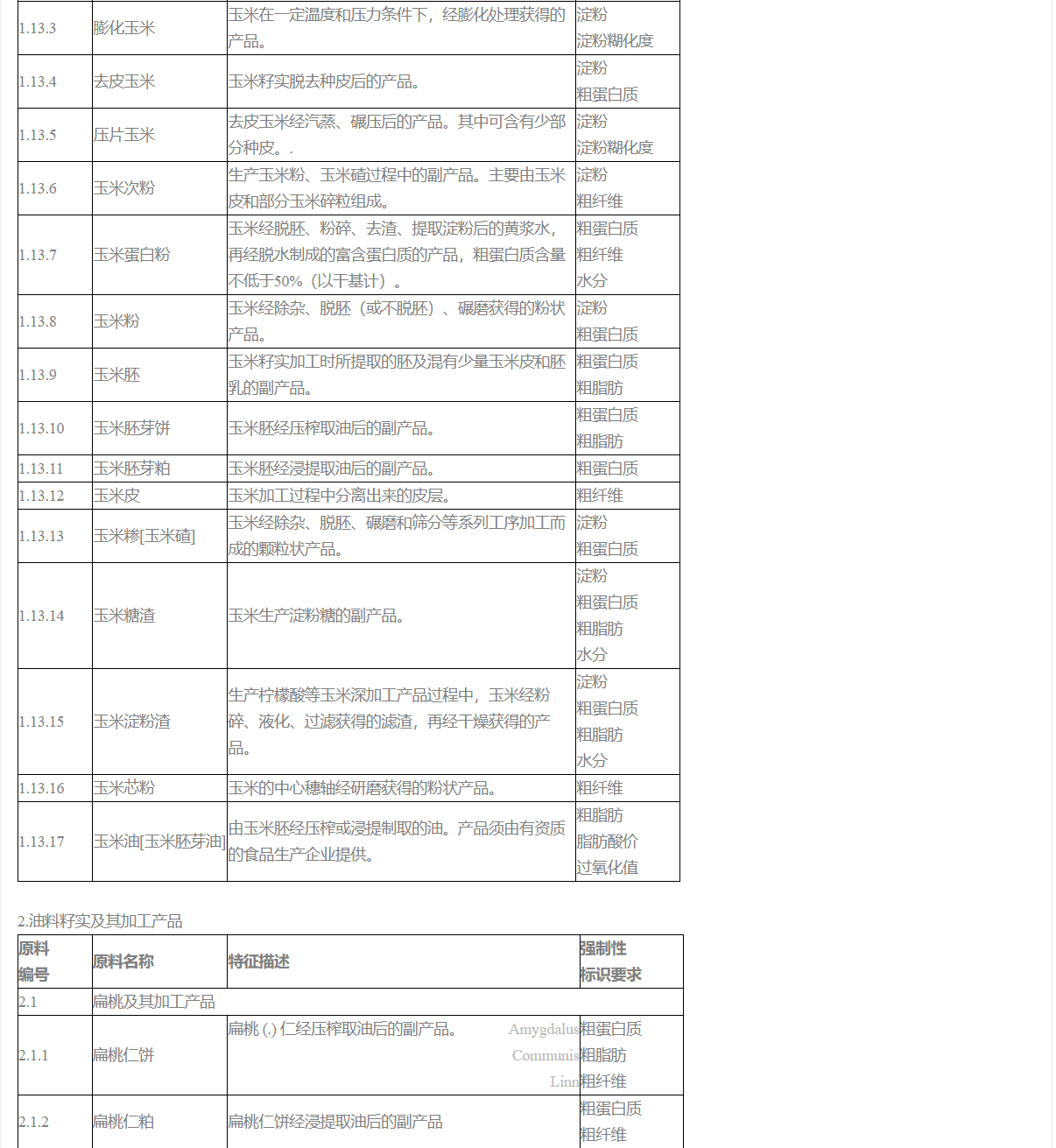 4. 目錄第三部分中“強(qiáng)制性標(biāo)識(shí)要求”所規(guī)定的項(xiàng)目為原料的質(zhì)量或衛(wèi)生特征指標(biāo),應(yīng)在原料標(biāo)簽的分析保證值等項(xiàng)目中列出。