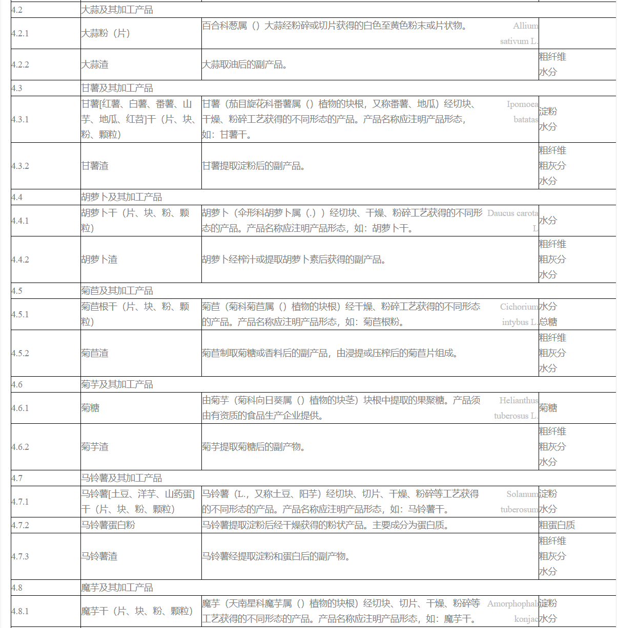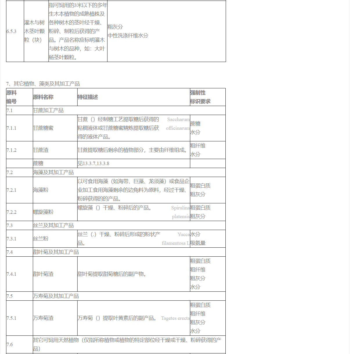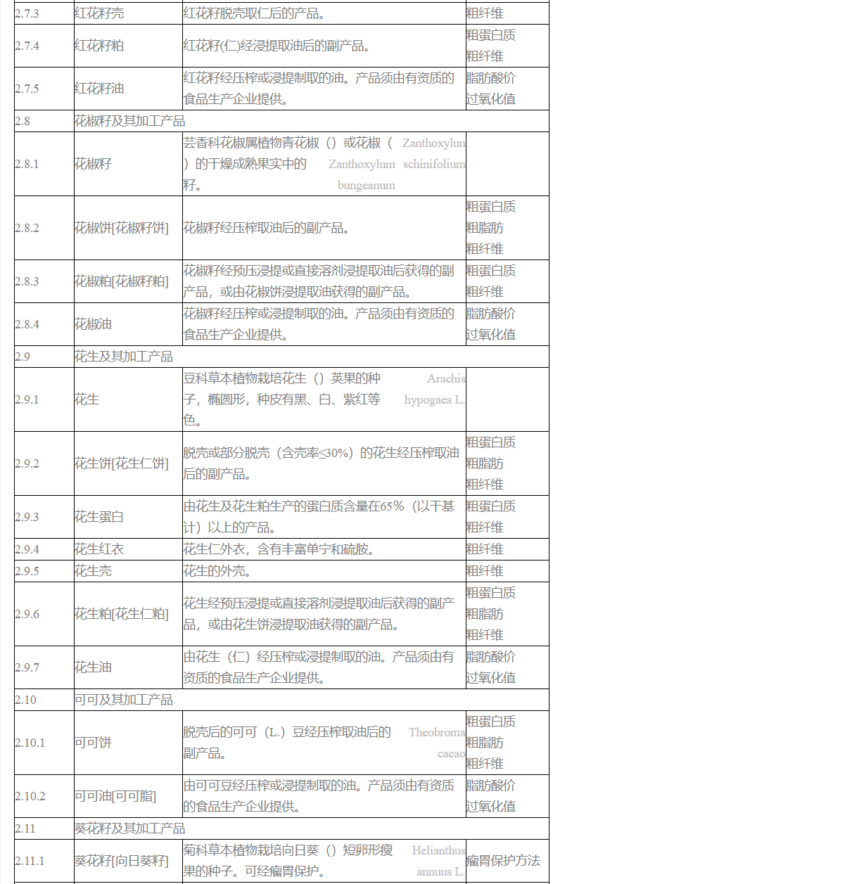 8.除目錄中有特殊規(guī)定外,植物性飼料原料的植物學(xué)純度通常不得低于95%。