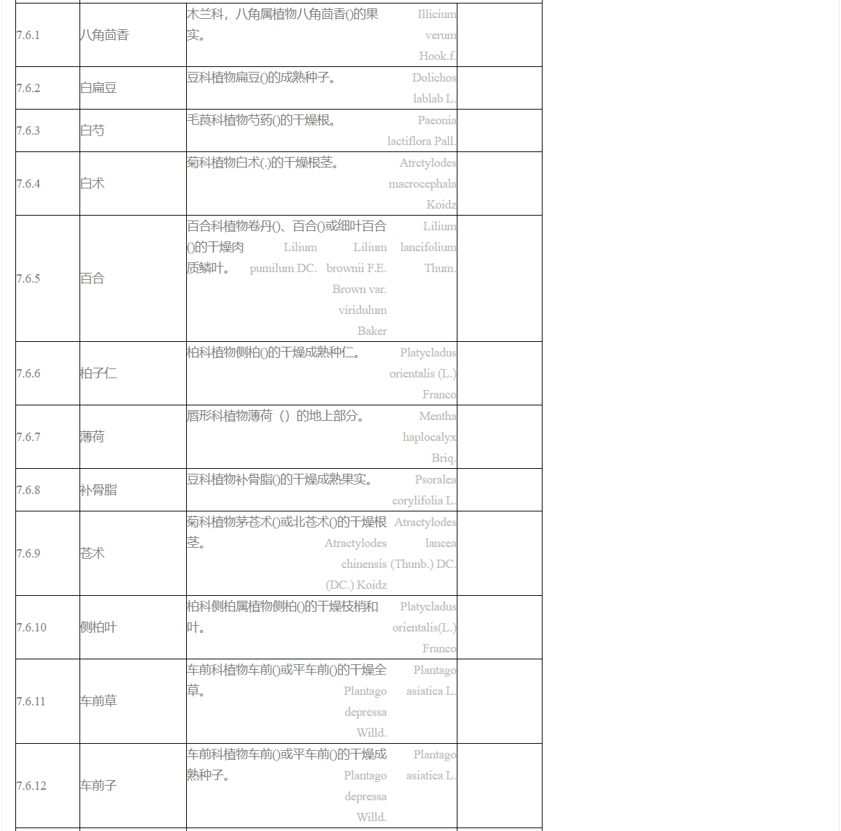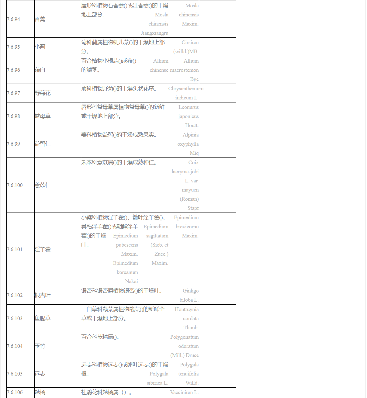 11.目錄第三部分中原料編號(hào)采用三級(jí)編號(hào)格式,第一級(jí)表示大類(lèi)編號(hào);第二級(jí)代表相同大類(lèi)下的不同原料來(lái)源;第三級(jí)表示相同原料來(lái)源下的不同產(chǎn)品。第二級(jí)和第三級(jí)原則上按首個(gè)中文字的拼音順序進(jìn)行排列。
