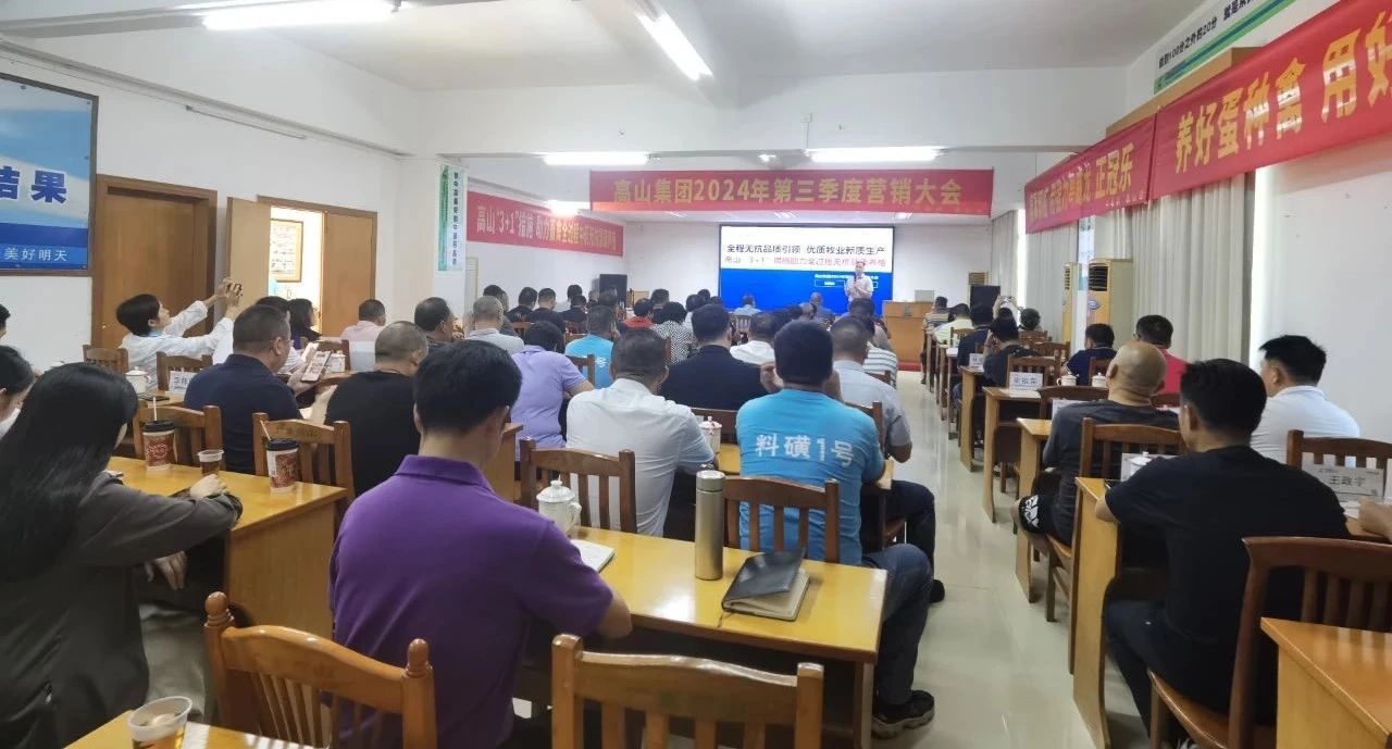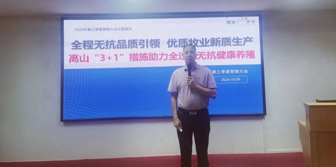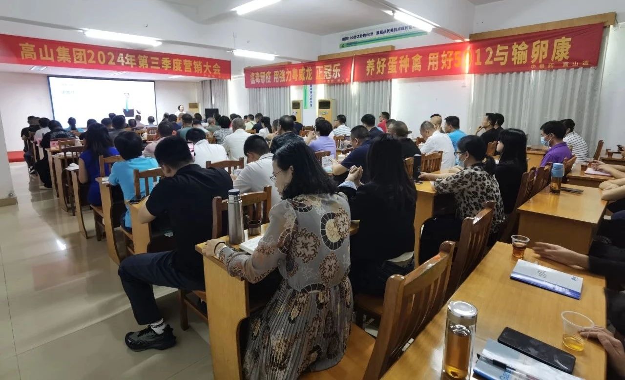 2024年10月9日,高山集團(tuán)2024年第三季度營銷大會(huì)在集團(tuán)總部勝利召開。大會(huì)以《全過程中藥無抗引領(lǐng)優(yōu)質(zhì) 優(yōu)質(zhì)助力高質(zhì)量新質(zhì)生產(chǎn)》為主題,圍繞“健壯的種苗、高質(zhì)量的飼料、生物安全和高山超前中藥保健”等四大措施,全面推廣全過程中藥無抗畜禽健康養(yǎng)殖模式,為餐桌提供高端優(yōu)質(zhì)的肉蛋奶品。來自全國各地的40多名致力于中藥無抗蛋雞養(yǎng)殖的精英代表、全國三十多個(gè)省地區(qū)的營銷精英和公司高管等共90多人參加。