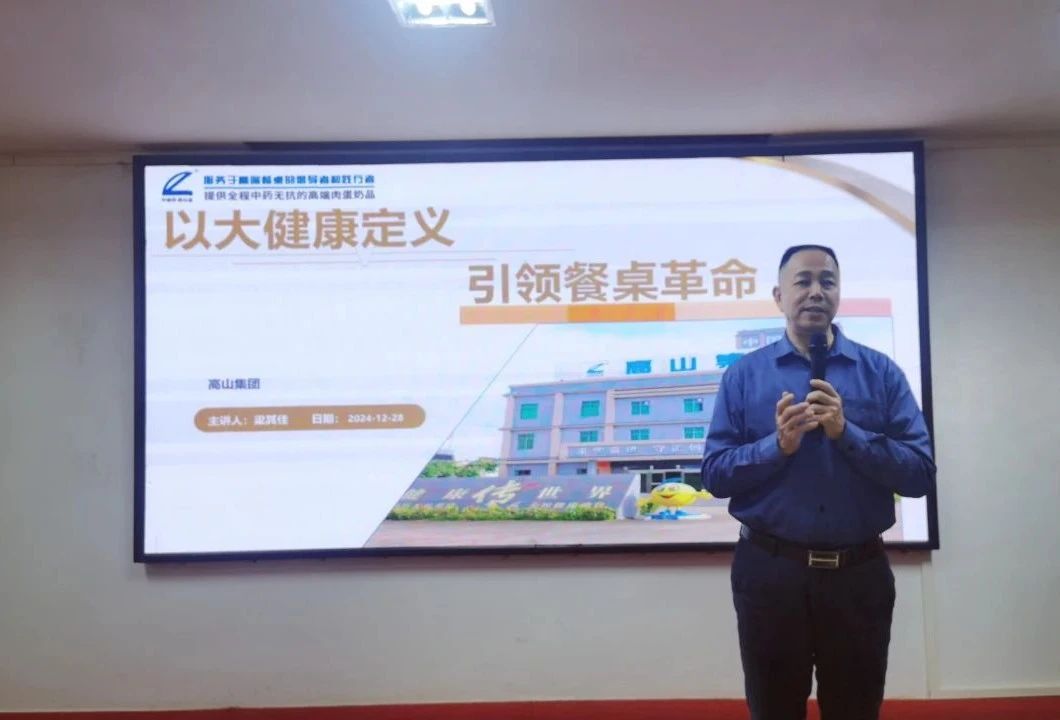 廣東省人大代表、華南農(nóng)業(yè)大學(xué)學(xué)位研究生第二導(dǎo)師、華南理工大學(xué)食品科學(xué)與工程學(xué)院工程碩士研究生校外指導(dǎo)教師、廣東海洋大學(xué)客座教授、高山商學(xué)院院長(zhǎng)、高山集團(tuán)董事長(zhǎng)梁其佳作了《以大健康定義 引領(lǐng)餐桌革命》的主題報(bào)告,他從當(dāng)前產(chǎn)業(yè)業(yè)態(tài)的發(fā)展趨勢(shì)及當(dāng)前的“卷”說起,深度闡述了中獸醫(yī)藥的高山定義及其業(yè)態(tài)擔(dān)當(dāng),要將中藥的疾病預(yù)防與中藥的功能保健相結(jié)合應(yīng)用于畜禽生產(chǎn)中,以高山“3+1”措施,助力全過程中藥無抗健康養(yǎng)殖,其目的是生產(chǎn)出更安全、更健康、更優(yōu)質(zhì)和更美味的肉蛋奶品!消費(fèi)在降級(jí),而健康在升級(jí),服務(wù)于5%的高端餐桌人群,引領(lǐng)健康消費(fèi)與產(chǎn)業(yè)向新發(fā)展。他指出,高山2025年?duì)I銷工作重點(diǎn)是抓住1個(gè)中心:高舉全過程無抗養(yǎng)殖;2個(gè)抓手:一是實(shí)施“三個(gè)1工程”,做好據(jù)點(diǎn)市場(chǎng),在市場(chǎng)、客戶和產(chǎn)品結(jié)構(gòu)布局中拾缺補(bǔ)短,精耕細(xì)作,擠占份額;二是以示范基地和示范場(chǎng)為抓手,引領(lǐng)高山品牌向新向優(yōu)向全產(chǎn)業(yè)鏈服務(wù)延伸。他勉勵(lì)我們,認(rèn)準(zhǔn)并堅(jiān)定致力于成為服務(wù)高端餐桌的倡導(dǎo)者和踐行者!為餐桌提供全過程中藥無抗的高端肉蛋奶品!堅(jiān)定地在中藥全過程無抗健康養(yǎng)殖的發(fā)展道路上繼續(xù)前進(jìn)!