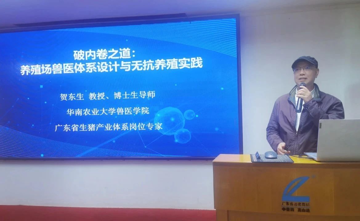 華南農(nóng)業(yè)大學(xué)獸醫(yī)學(xué)院教授、博士生導(dǎo)師、國家農(nóng)業(yè)部獸藥疫苗評(píng)審委員會(huì)委員、生豬產(chǎn)業(yè)體系豬病崗位科學(xué)家賀東生教授作《破內(nèi)卷之道:養(yǎng)殖場(chǎng)獸醫(yī)體系設(shè)計(jì)與實(shí)踐》報(bào)告,帶大家了解規(guī)模畜禽場(chǎng)三級(jí)獸醫(yī)體系的意義、作用和構(gòu)成、運(yùn)作模式和工作內(nèi)容,并分享了在規(guī)模場(chǎng)獸醫(yī)體系運(yùn)作中要懂得運(yùn)用高山中藥為全程無抗養(yǎng)殖保駕護(hù)航,例如母豬階段長(zhǎng)期添加料磺1號(hào),母豬或仔豬階段用221方案,消化道問題用高山粵威龍和藿香口服液,腹瀉問題用藿香正氣口服液和楊樹花口服液,呼吸道問題用強(qiáng)力粵威龍和定喘散或甘草顆粒,中大豬育肥階段用高山粵威龍、藿香正氣散、藿香正氣口服液、肥大康等。自繁自養(yǎng)的美業(yè)種豬場(chǎng),從2017年開始,使用高山中藥實(shí)現(xiàn)全過程無抗養(yǎng)殖,值得大家借鑒和學(xué)習(xí)。會(huì)議期間吃的無抗豬肉,美味,口感好,不油膩,回味無窮。