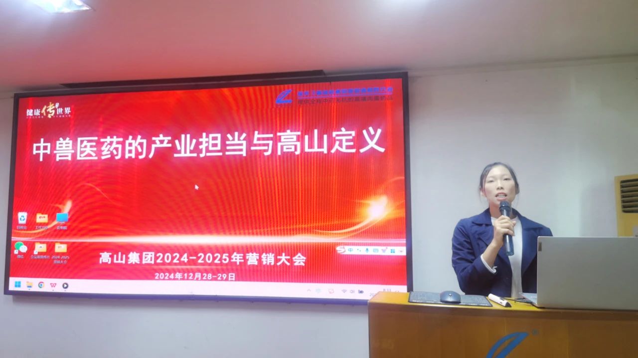 2024年12月28-29日,《高山集團(tuán)2024-2025年度營銷大會(huì)》在高山總部召開。大會(huì)以“中獸醫(yī)藥的產(chǎn)業(yè)擔(dān)當(dāng)與高山定義”為主題。來自全國三十多個(gè)省區(qū)營銷精英、客戶嘉賓和公司高管等70多人參加,總結(jié)2024 年?duì)I銷工作,共謀破局向新發(fā)展,共繪2025營銷大健康藍(lán)圖!大會(huì)由營銷中心副總監(jiān)龍美秀和商學(xué)院培訓(xùn)師鐘飛燕主持。