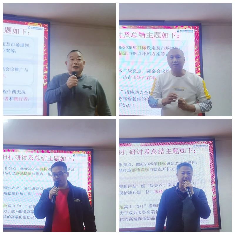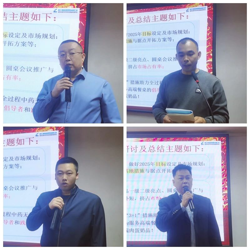 營銷中心總監(jiān)陳翠作《2024-2025年度營銷工作總結(jié)與計(jì)劃》,首先她總結(jié)了2024年?duì)I銷工作,即將過去的2024年,我們緊扣中藥無抗大健康養(yǎng)殖理念開展工作,在卷中重生,實(shí)現(xiàn)銷售同比大增長(zhǎng),成績(jī)來之不易。同時(shí),她也分析了不足及存在問題。在新的一年,我們要緊緊圍繞《2025年高山十件工作安排》的總規(guī)劃總方針總路線,扎實(shí)推進(jìn)“三個(gè)1工程”,做好2025年度營銷工作,向無抗,向健康,向優(yōu)質(zhì),前進(jìn)。堅(jiān)定啟航新征程,踔厲奮進(jìn)譜新篇!