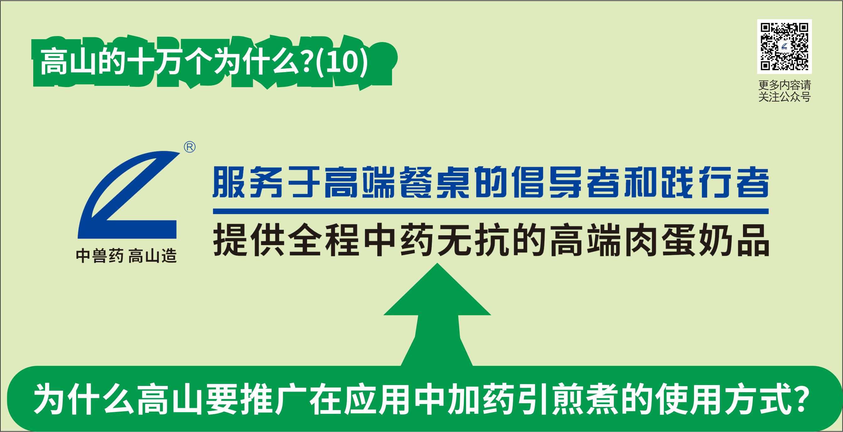 高山中獸藥,一直在積極倡導(dǎo)和推廣在畜禽養(yǎng)殖生產(chǎn)中采用“加藥引煎煮”的使用方式。 一、更好地發(fā)揮傳統(tǒng)中藥在畜禽生產(chǎn)中的引經(jīng)靶向作用,提升產(chǎn)品的生物利用與作用。中藥產(chǎn)品,通過煎煮或開水浸泡后服用,有助于提高產(chǎn)品成分在機(jī)體內(nèi)的利用。例如,瘟毒邪疫產(chǎn)品“正冠樂”和“強(qiáng)力粵威龍”,通過煎煮使用,作用更好。若加入藥引(如紅糖、生姜、大棗等)后煎煮,作用更佳。煎煮,能使藥材的有用成分充分釋放,并通過藥引“引經(jīng)”,靶向直達(dá)效用部位。 此外,高山中藥,采用機(jī)械超微技術(shù)加工的中藥散劑,如水懸浮散劑,直接拌料尤其是經(jīng)煎煮后拌料,或飲水服用,既方便操作,又增強(qiáng)作用,從而優(yōu)化產(chǎn)品的生物利用。二、通過煎煮使用,可在一定程度上降低了相關(guān)因素對機(jī)體的毒副作用。還有,在疫苗接種期間,或在種禽畜的用藥禁忌期內(nèi),煎煮后的中藥產(chǎn)品用于保健、預(yù)防或治療,更好地避免因不明藥物之間的相互作用影響免疫效果。通過煎煮使用,還可以中和部分藥材的寒熱偏性(如溫性或涼性藥物),減少對畜禽胃腸道的刺激。三、傳承與創(chuàng)新傳統(tǒng)中醫(yī)的“整體觀”與“治未病”理念,更體現(xiàn)了對幾千年來優(yōu)秀傳統(tǒng)中醫(yī)文化的精髓傳承。通過運用中醫(yī)中藥理念的整體觀,通過加藥引煎煮,即可直接針對機(jī)體,調(diào)節(jié)機(jī)體的整體免疫功能,從而增強(qiáng)畜禽機(jī)體對病原體的免疫防御能力。如在預(yù)防家禽呼吸道證候上,“金冠呼靈”配合藥引煎煮后使用,既能緩解證狀,又能有助于降低在病毒潛伏期的機(jī)體繼發(fā)性感染,體現(xiàn)了“治未病”的前置預(yù)防思想。四、適應(yīng)規(guī)?;F(xiàn)代化集約化養(yǎng)殖的精細(xì)化個性需求,體現(xiàn)其方便性和有效性。在高密度、集約化養(yǎng)殖場景下,疾病防控需兼顧效率與精準(zhǔn)性。通過標(biāo)準(zhǔn)化煎煮流程(如藥引配比、煎煮時長)和分階段使用方案(如家禽3-5天、家畜5-7天),可以幫助養(yǎng)殖企業(yè)實現(xiàn)精準(zhǔn)使用。例如,針對家禽呼吸道綜合征,煎煮后的產(chǎn)品可通過噴霧或薰蒸方式直接作用于呼吸道黏膜,更快緩解癥狀。 五、高山關(guān)于健康傳世界的發(fā)展理念,就是為養(yǎng)殖者,更為消費者創(chuàng)造更大的價值的服務(wù)宗旨。高山推廣“加藥引煎熬”的使用方式,既是中醫(yī)傳統(tǒng)智慧的現(xiàn)代化應(yīng)用,也是應(yīng)對養(yǎng)殖業(yè)挑戰(zhàn)的創(chuàng)新實踐,以及將獨特的中藥理念應(yīng)用于畜禽生產(chǎn)的更廣泛實踐,這無不體現(xiàn)在靶向給藥、提升作用、保障安全、踐行健康,守正創(chuàng)新、傳承文化、精準(zhǔn)需求以及順應(yīng)安全無抗健康消費的新趨勢等方面。高山中藥,從中獸藥,高山造,到高山“1+3+1”中藥無抗健康養(yǎng)殖理念,到致力于成為服務(wù)高端餐桌的倡導(dǎo)者與踐行者,為餐桌提供全過程中藥無抗的高端肉蛋奶品,就是高山中獸藥近40年發(fā)展的經(jīng)驗總結(jié)與實踐結(jié)晶。