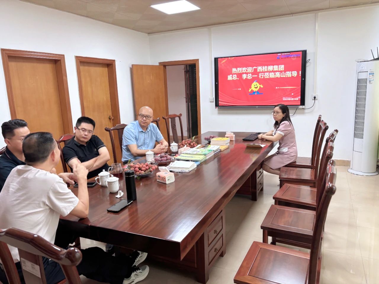 2025年6月18日,廣西桂柳牧業(yè)集團種禽蛋鴨管理公司總經(jīng)理戚邦帥,廣西桂柳生物飼料有限公司總經(jīng)理李寧等蒞臨高山集團考察指導(dǎo),高山集團董事長梁其佳、營銷總監(jiān)陳翠、董事長助理兼廣西營銷經(jīng)理等陪同與交流。