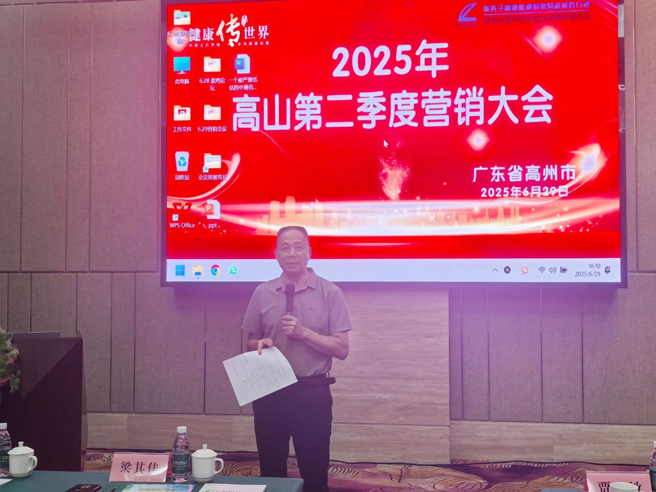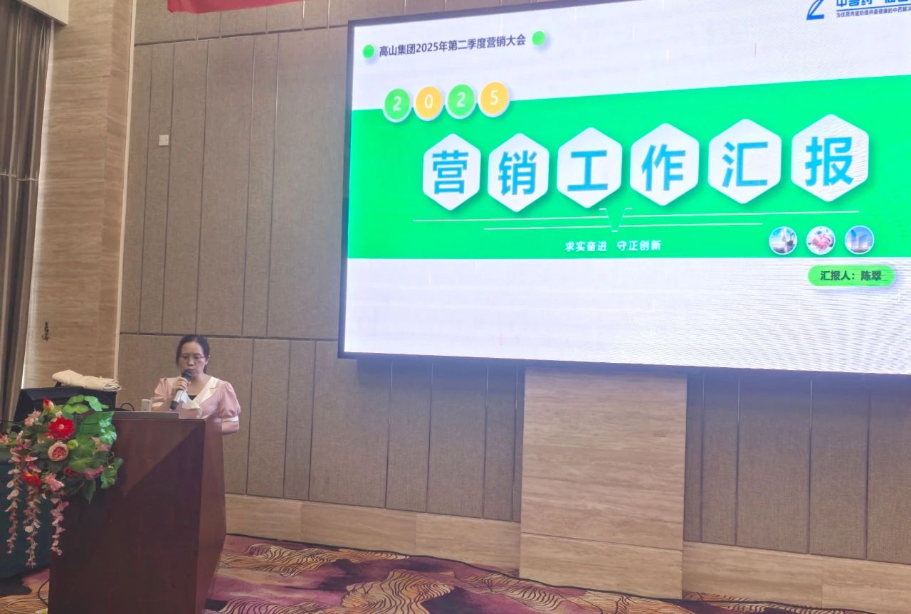 2025年6月29日,高山集團2025年第二季度營銷大會在茂名高州市樂天溫泉酒店成功召開,來自全國三十多個省區(qū)的高山營銷精英、客戶嘉賓、公司管理代表近60人參加大會。大會由營銷中心副總監(jiān)龍美秀主持。