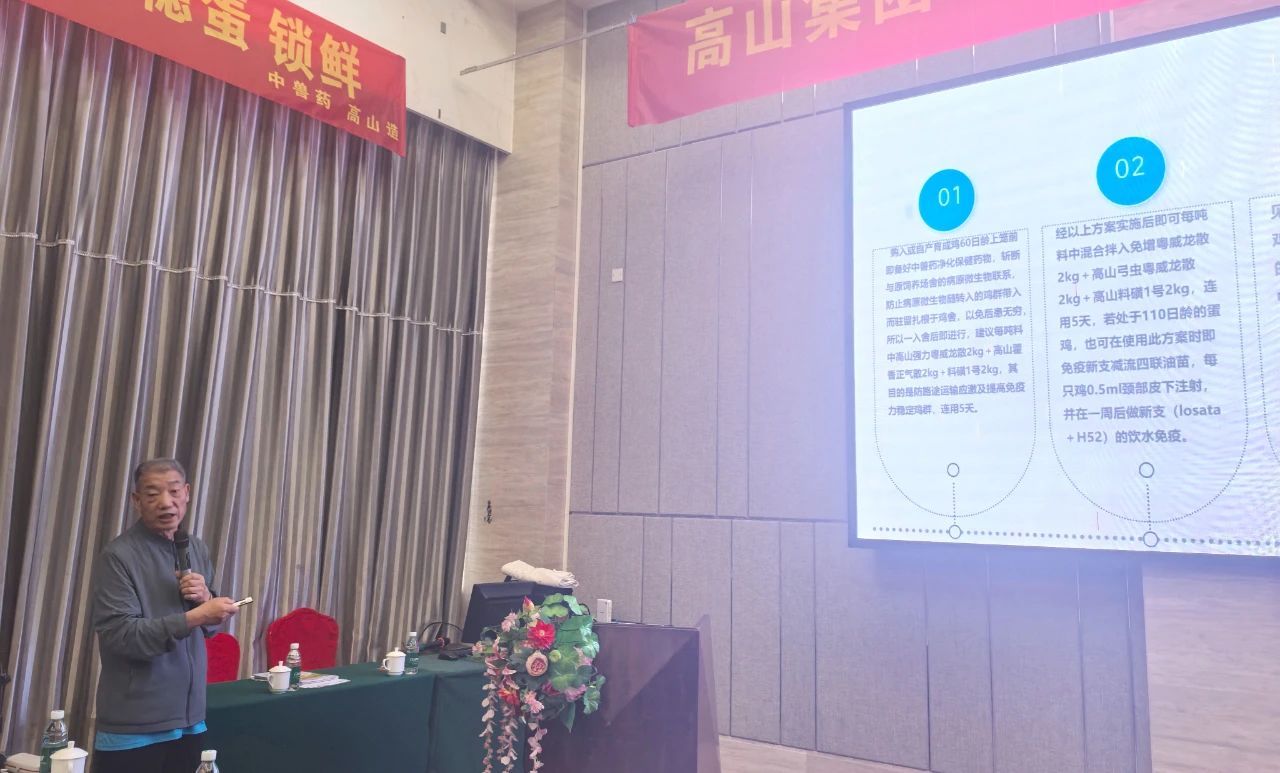信宜市中醫(yī)院副主任中醫(yī)師劉偉作《從中醫(yī)關于婦女孕育及婦科疾病機理探討蛋雞輸卵管炎的中醫(yī)藥防治》報告,首先講解中醫(yī)診斷治療疾病的思維和中醫(yī)對婦女孕育及婦科疾病相關理論,同時剖析蛋雞輸卵管炎的中醫(yī)辯證及防治原則,最后分享高山獸藥對蛋雞輸卵管炎預防的理念及產(chǎn)品,例如料磺5912提高生產(chǎn)性能、延長產(chǎn)蛋高峰期,料理18改善卵巢和輸卵管功能、改善蛋品質,輸卵康改善輸卵管的健康,提高蛋品質。
